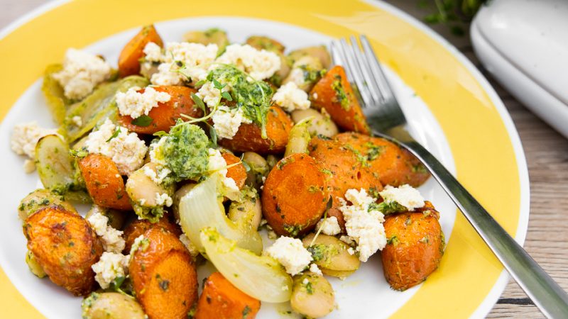 Paahdettu porkkana-papusalaatti