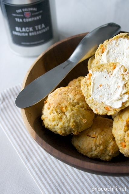 Mieleni teki tänä aamuna jotakin lämmintä ja vastaleivottua. Sen sijaan, että olisin tarponut lumihangessa lähimpään kauppaan hakemaan (melkein) tuoretta leipää, päädyin tekemään skonsseja. Näistä saa todella helpon aamupalan, jos raastat porkkanat ja sekoitat kuivat aineet jo illalla valmiiksi. Aamuvirkuille ei tosin ole iso homma sekään, jos taikinan pyöräyttää kokonaan aamulla. Soijajogurtti tuo skonsseihin mukavasti proteiinia, joten nälkä ei yllätä ihan heti.
