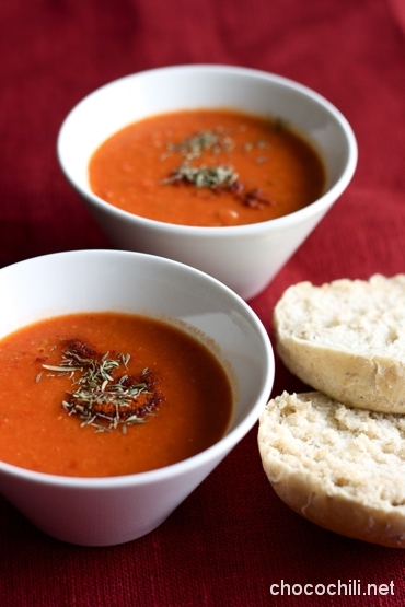 Paprikan makeuden saa aivan toisella tavalla esille, jos sen paahtaa ennen käyttöä. Samalla uuninlämmityksellä kannattaa pyöräyttää keiton kaveriksi vaikka pari pellillistä sämpylöitä.