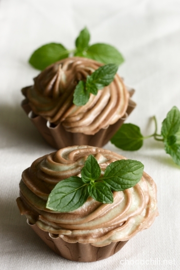 Olen jo pidemmän aikaa himoinnut jotakin minttusuklaaleivonnaista, ja mikäs sen helpompaa kuin pyöräyttää cupcaket kyseisellä makuyhdistelmällä.