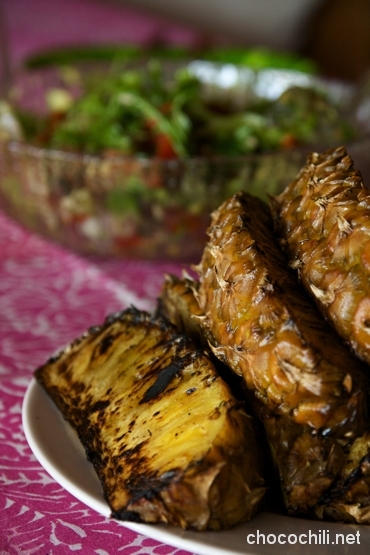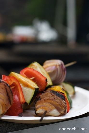 Näiden herkkujen lisäksi ruokalistalla oli erilaisia seitannakkeja, tofugrillereitä, savutofua, seitanpihvejä, perunoita, grillinyyttejä ja maissia. Pieni tovi, mikä syömiseltä jäi, vietettiin saunoen