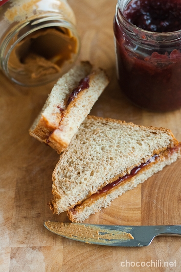 Parhailta nämä peanut butter & jelly sandwichit maistuvat, jos leipänä on ihan valkoinen vehnähöttöpaahtoleipä. Tällä kertaa kuitenkin käytin täysjyväpaahtista.