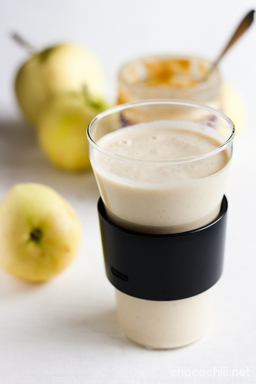 Olen ehkä tainnut muutamaan kertaan mainita, että rakastan maapähkinävoita. Ei tuota mitään vaikeuksia syödä sitä suoraan lusikalla purkista, mutta keksin sille mielelläni jatkuvasti uusia käyttökohteita. Smoothieen en olekaan sitä vielä aikaisemmin tajunnut tyrkätä, mutta hyvää kannatti odottaa! Omena ja maapähkinävoi on aikaisemminkin jo todettu hyväksi yhdistelmäksi, ja hyvinhän se pelaa nestemäisessäkin muodossa.