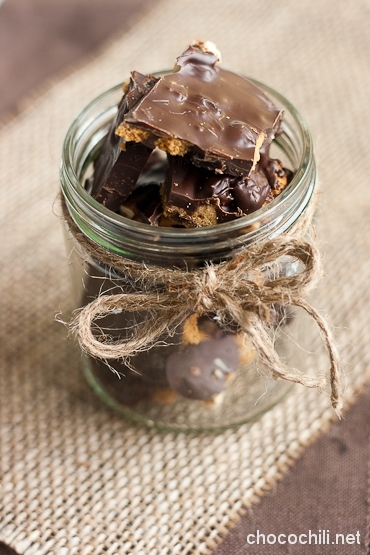 Piparkakkumuruilla, rouhituilla pähkinöillä ja rusinoilla höystetty suklaa on ihana herkku kahvin kanssa. Syö itse tai anna lahjaksi!