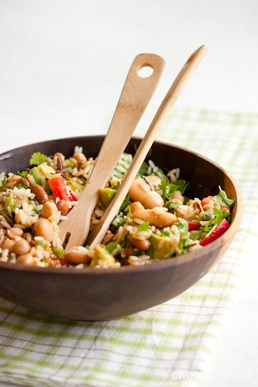 Maaliskuussakin mentiin perusruokalinjalla. Ruokalistalta löytyi esimerkiksi tätä riisi-papusalaattia.