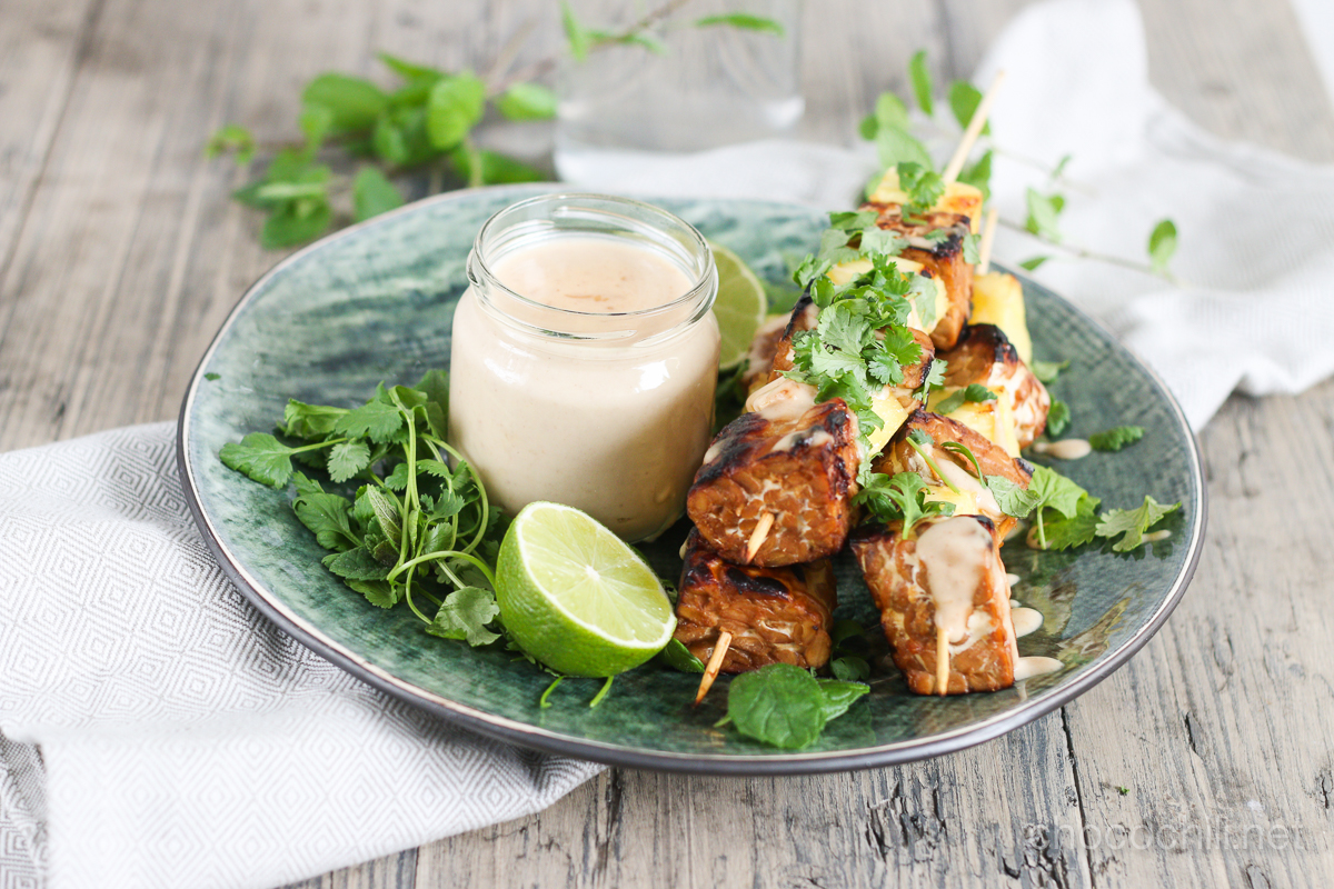 Tempe-ananasvartaat satay-kastikkeessa