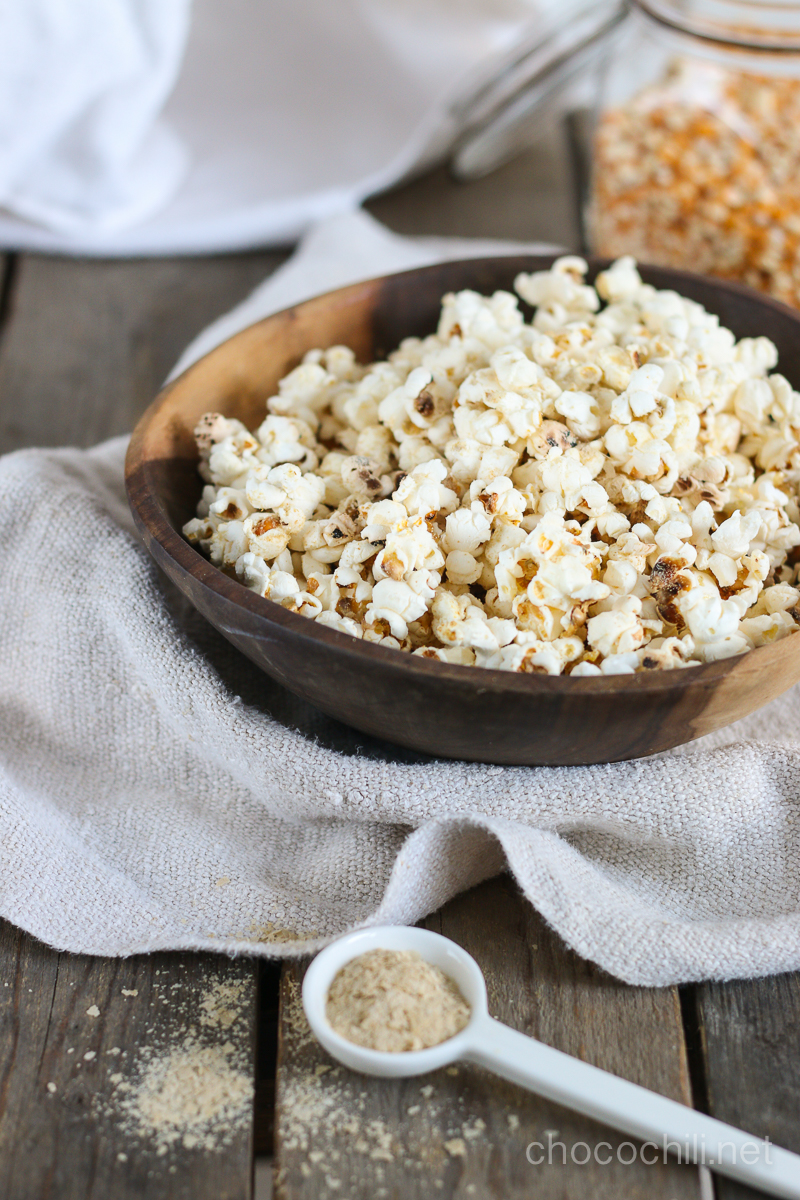 Ravintohiivahiutaleilla maustetut popcornit. Nam!