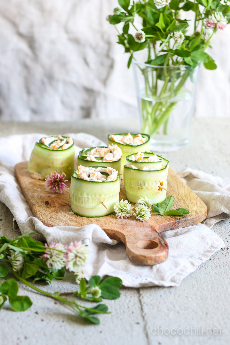 Hauskat porkkalalla täytetyt kurkkurullat sopivat kesän illanistujaisiin.