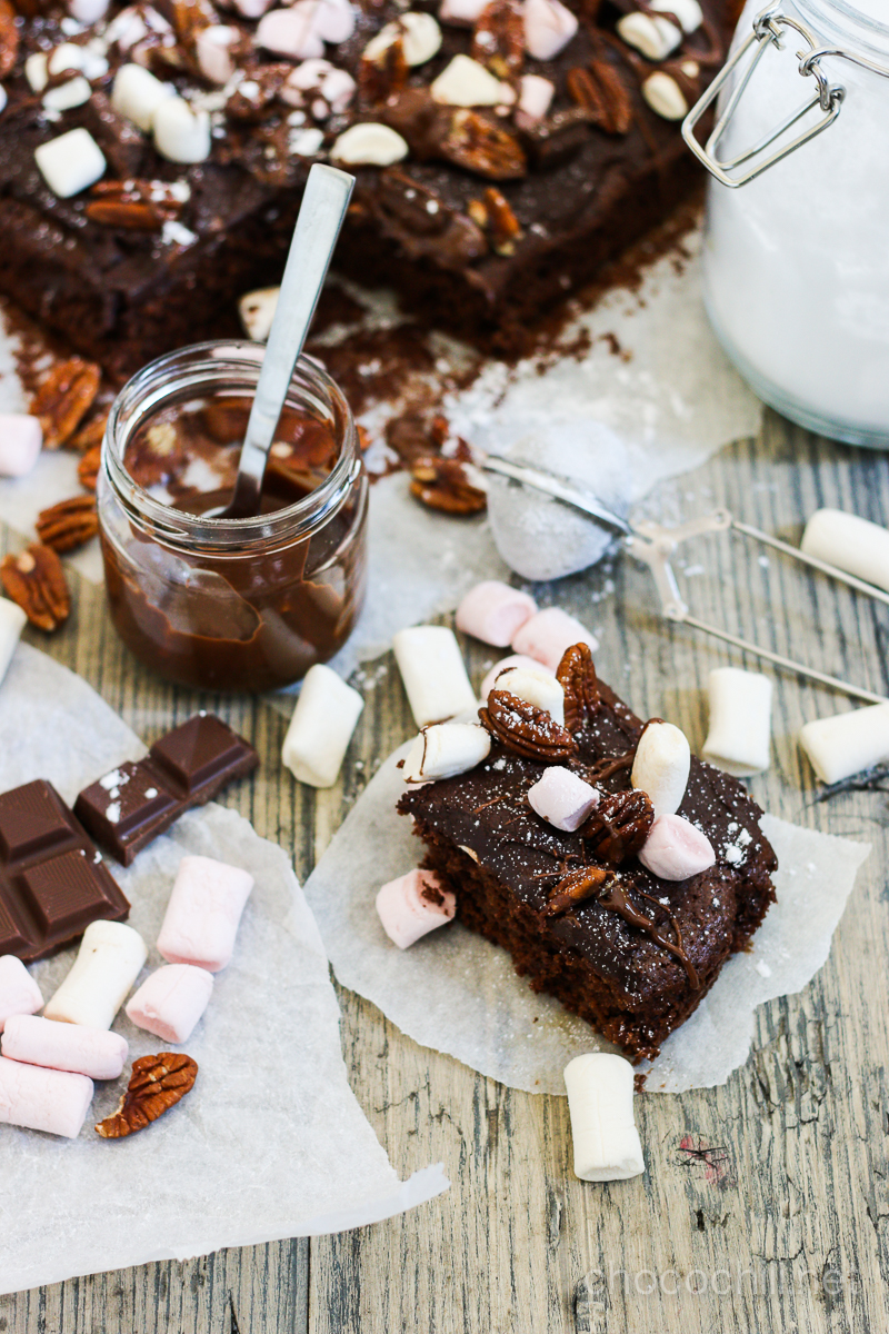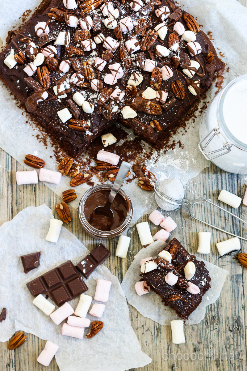 Kuorrutin tällä kertaa pehmeät vegaaniset mokkapalat Rocky road -namusten hengessä vaahtokarkeilla, pähkinöillä ja suklaalla. Jos mietiskelet vielä viime hetken juhlatarjottavia viikonlopun valmistujaisia varten, nämä vegaaniset mokkapalat juuri sopivan överillä kuorrutteella voisivat olla yksi hyvä vaihtoehto! Ja tietysti nämä uppoavat nopeasti parempiin suihin ihan ilman juhliakin.