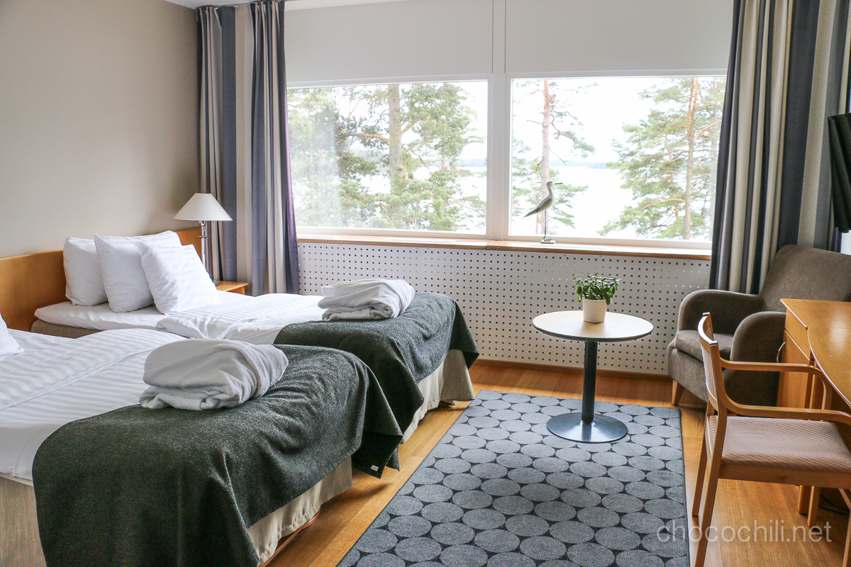 60-luvun arkkitehtuuri ja kalusteet eivät kenties ole kaikkien juttu, mutta minä olin Rantapuistossa eniten fiiliksissä hotellin tunnelmasta. Rantapuisto on rakennettu alun perin Yhdyspankin kouluskeskukseksi. Pankin ajoilta hotellissa on edelleen nähtävissä monia kalusteita, takkoja ja valaisimia, vaikka hotelli on kokonaan remontoitu. Upea aikamatka 60-luvulle!