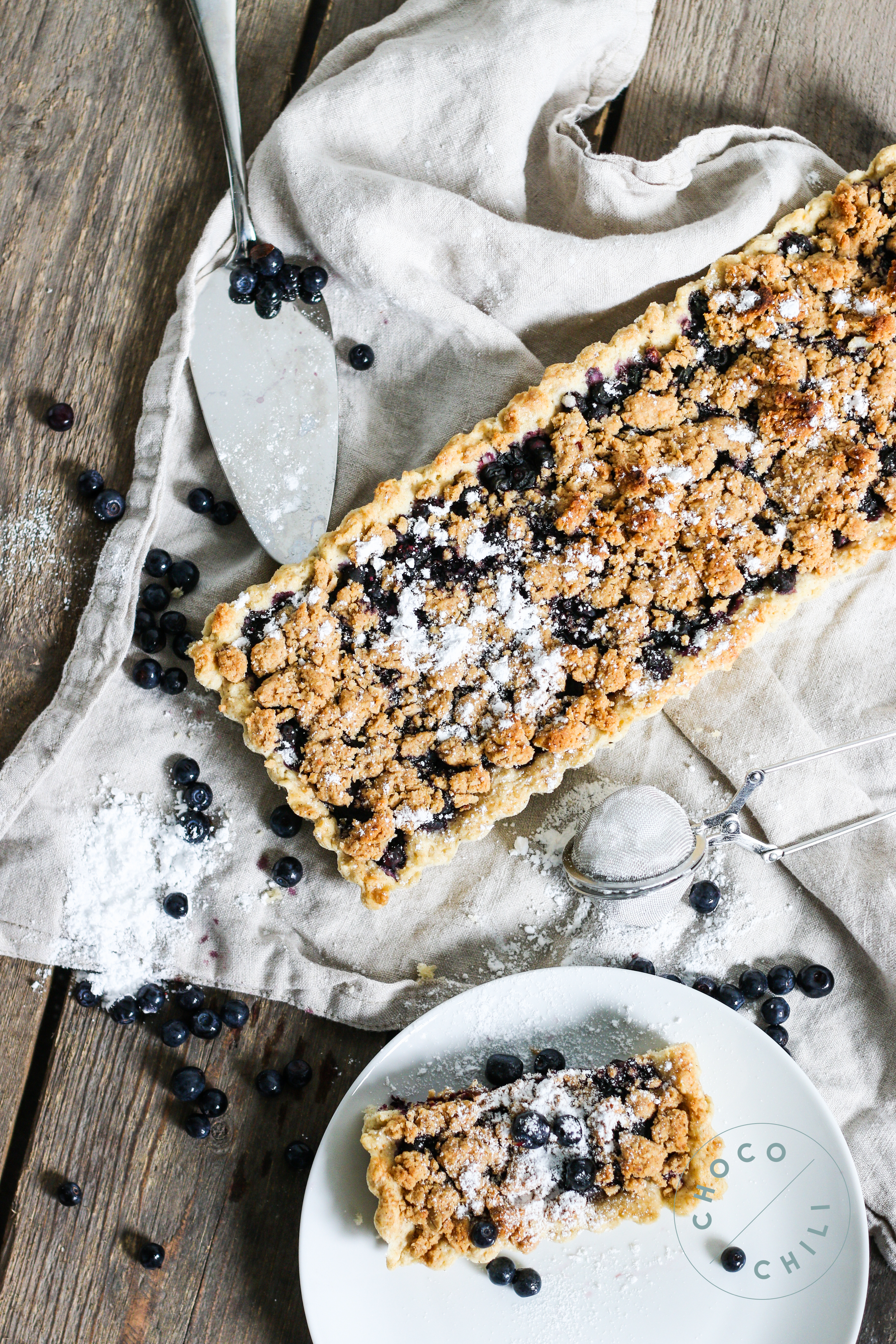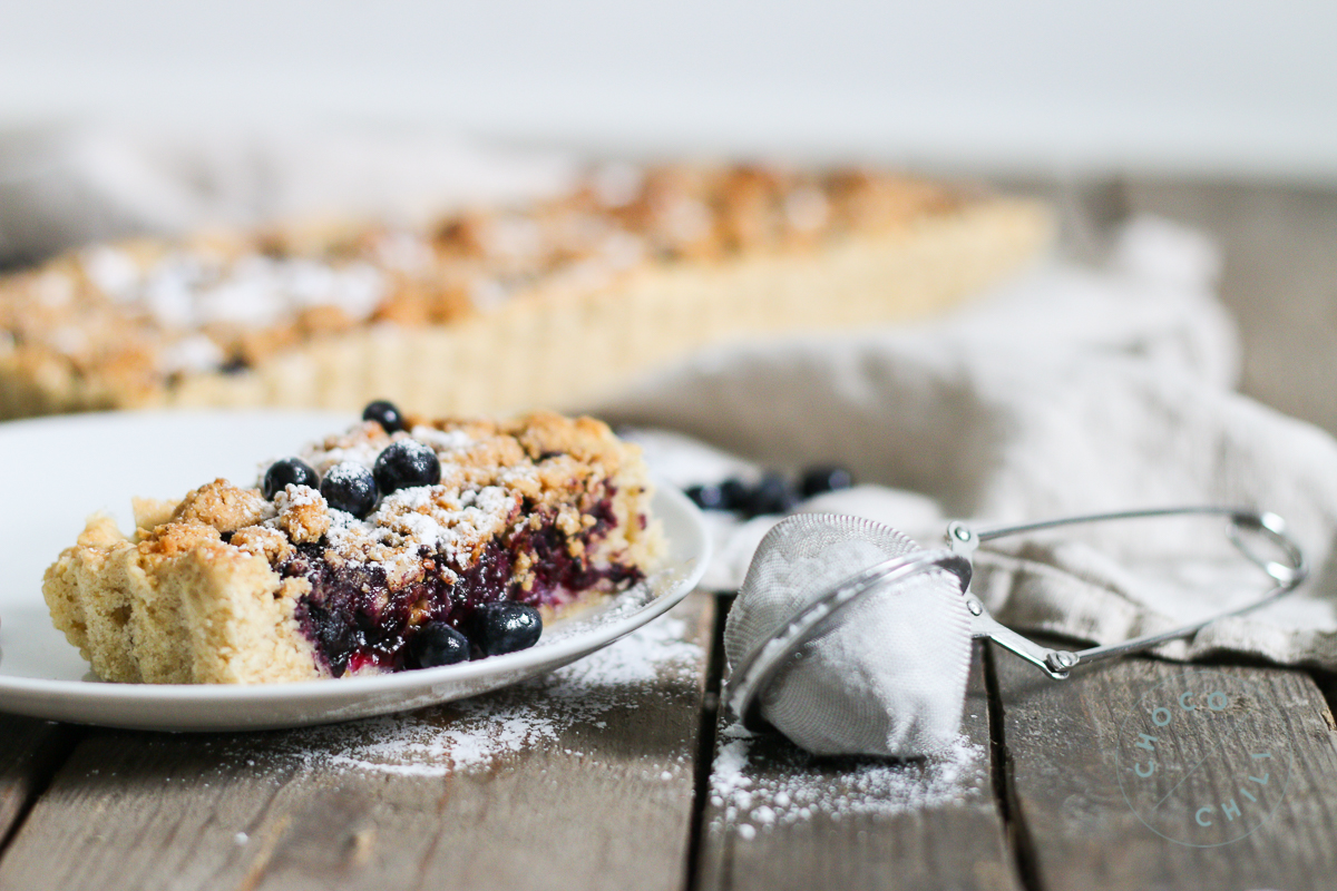 Kesäinen mustikkapiirakka sai tällä kertaa päälleen herkullisen maapähkinävoimurun.
