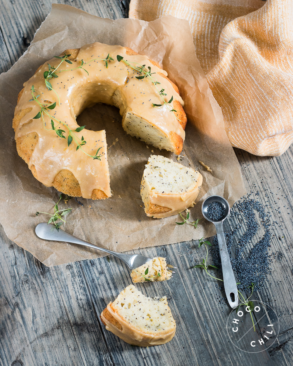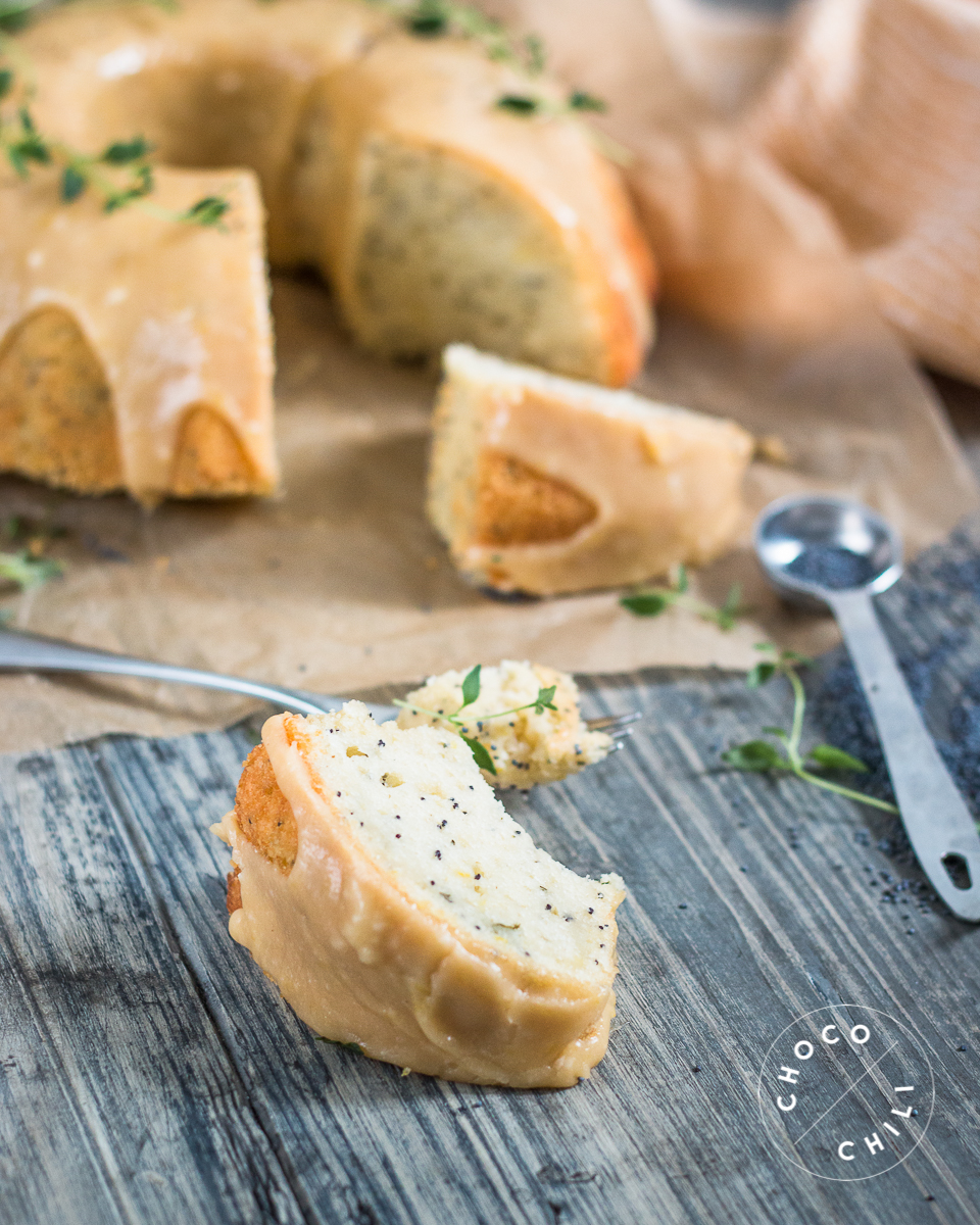 Unikonsiemenillä höystetty timjami-sitruunakakku kruunaa kahvipöydän.