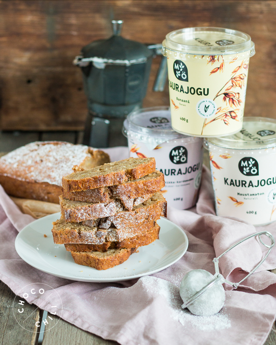 Yhteistyössä Mö kaurajogu – Mehevä banaanileipä syntyy kypsistä banaaneista ja kaurajogurtista.