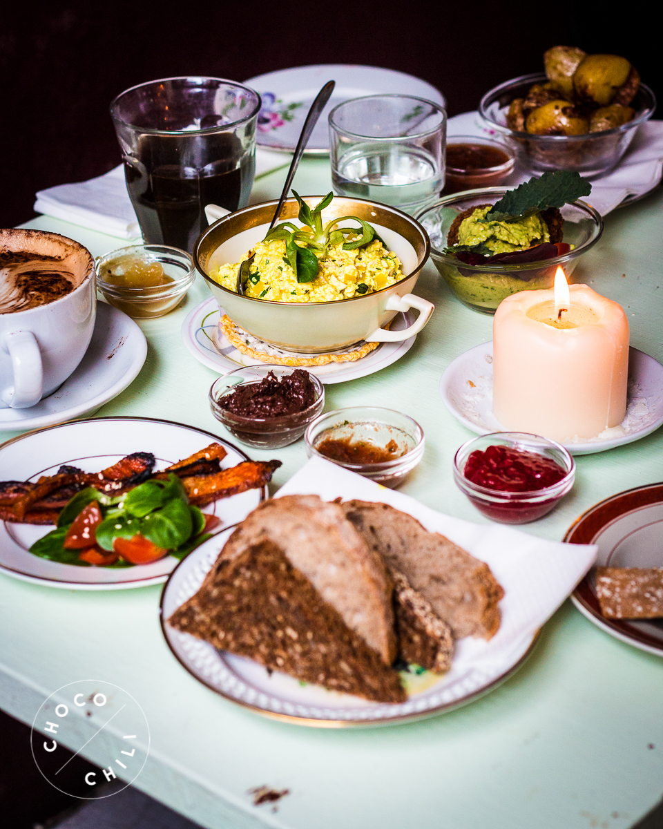 Kalaset on pieni boheemi kahvila-ravintola, jonka vegaaninen brunssi toimi erinomaisesti. Listalta ruksittiin tilaukseen haluamansa annokset ja pian pöytä notkui erilaisia pieniä ruokia herkuteltavaksi. Baaritiskiltä sai lisäksi niin paljon hilloja ja vegaanista Nutellaa kuin jaksoi syödä. Tykkäsimme erityisesti Kalasetin tofukokkelista ja porkkanapekonista. Myös kahvi oli täällä todella hyvää!