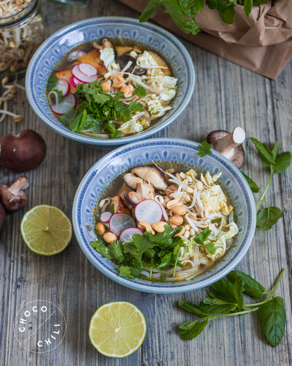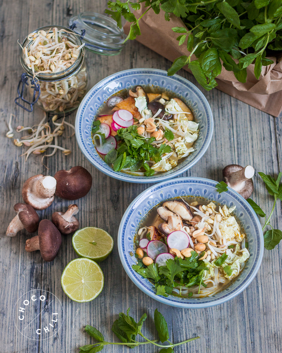 Tällä viikolla on kovien pakkasten takia tehnyt mieli kaikkea lämmintä. Keitot ovat täydellistä ruokaa pakkaspäiviin! Törmäsin K-kauppojen ruokalehdessä vegaaniseen pho-keittoreseptiin, jonka pohjalta tein tämän oman versioni. Keittelin keskiviikkona Pho-keiton liemen ja valmistelin lopun keiton pari päivää myöhemmin, kun en ehtinyt hoitaa koko hommaa alusta loppuun yhdessä päivässä. Keitto valmistuu kokonaisuudessaan kuitenkin noin tunnissa, jos haluaa päästä höyryävän keittokulhon ääreen yhden päivän aikana!