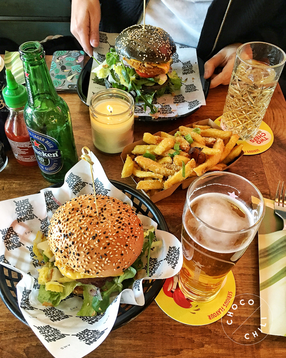 Vegan Junk Food Barin löydät Amsterdamista kahdesta paikasta: ensimmäisenä avatun pienemmän Burger Barin hieman suppeammalla listalla Staringpleinilta ja isomman ravintolan Marie Heinekenpleinilta.
