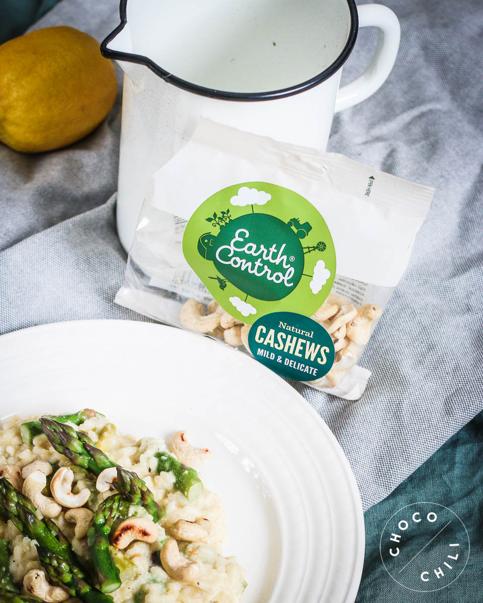 Käytin tähän risottoon Earth Controlin cashewpähkinöitä, joita ostamalla tukee samalla WWF:n metsäkampanjaa. Jokaisesta touko-kesäkuussa myydystä Earth Control-tuotteesta lahjoitetaan 10 senttiä Suomen metsien suojelutyöhön. Earth Control ja WWF ovat tehneet jo pitkään yhteistyötä. Tällä hetkellä WWF:llä on meneillään myös muun muassa sademetsien suojelukampanja Borneolla, jonka tavoitteena on suojella miljoona hehtaaria sademetsää.