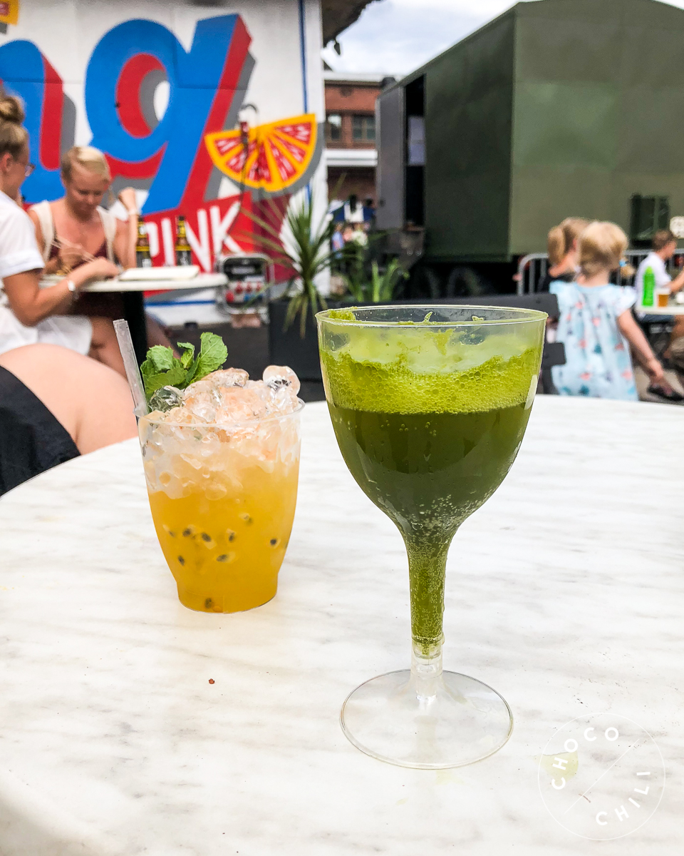 Tislaamon baari tarjoili alueella vegaanisia drinkkejä. Kale Champagne hurmasi!