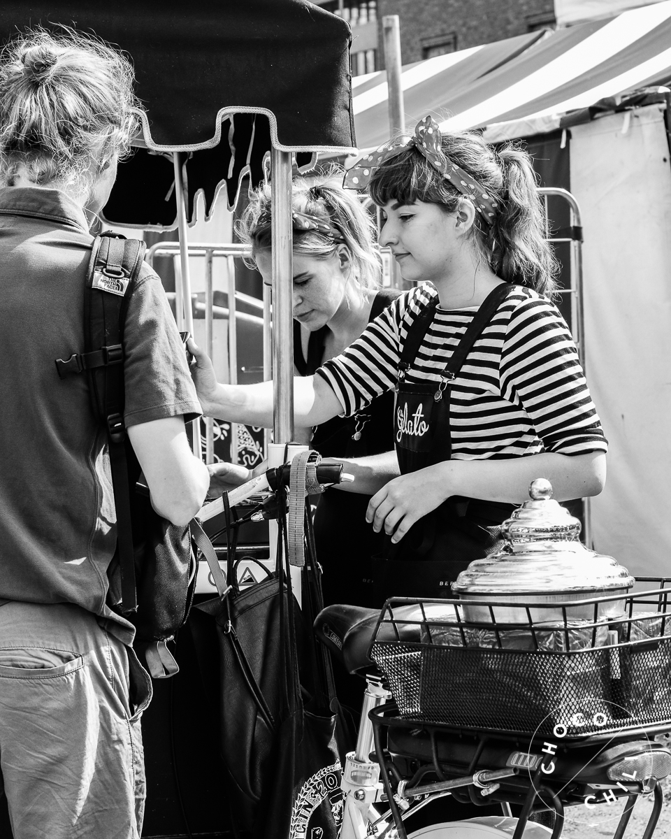 Lämpimänä kesäpäivänä jäätelökojuilla riitti jonoa. Onneksi tarjontaa löytyi useammasta pisteestä!