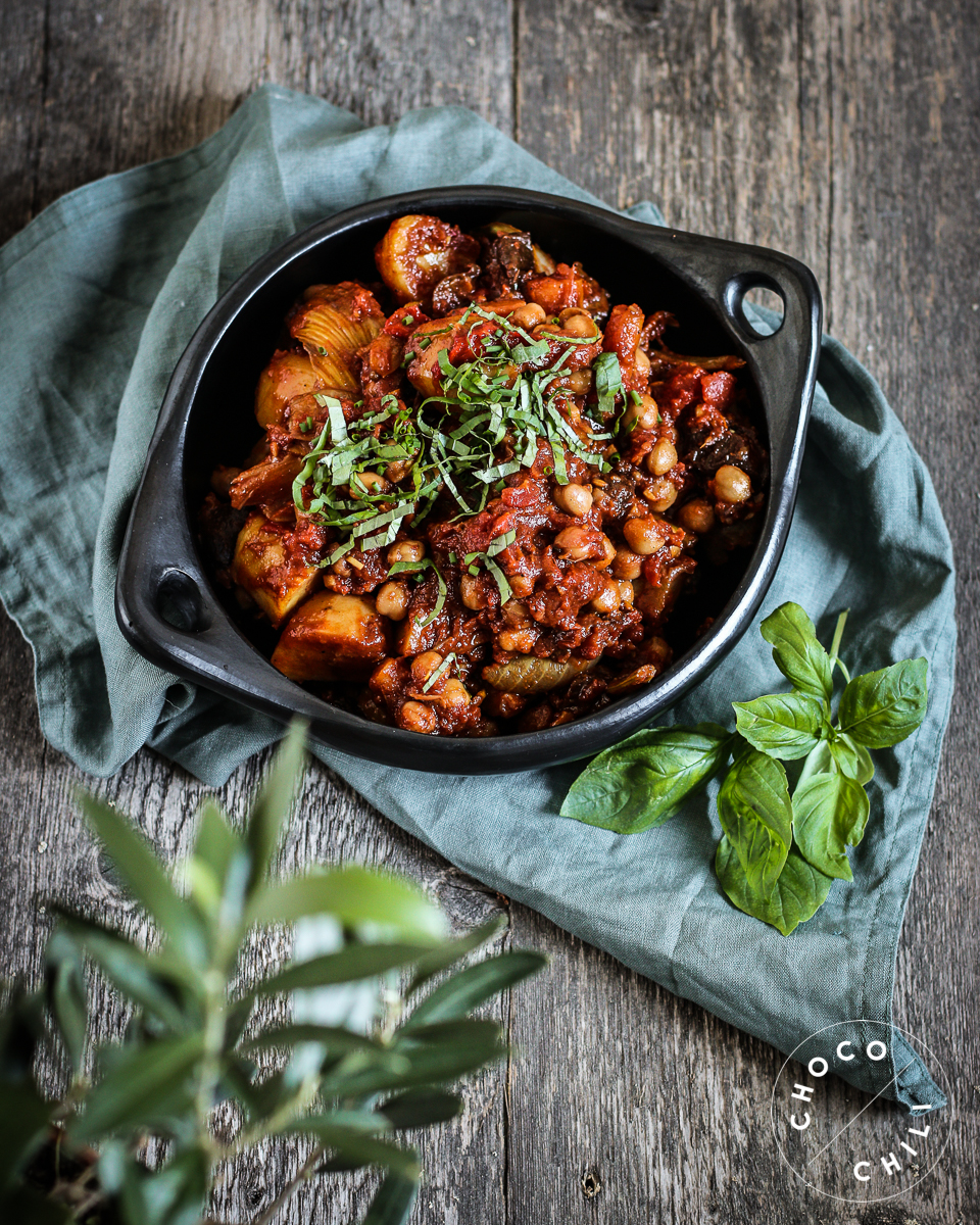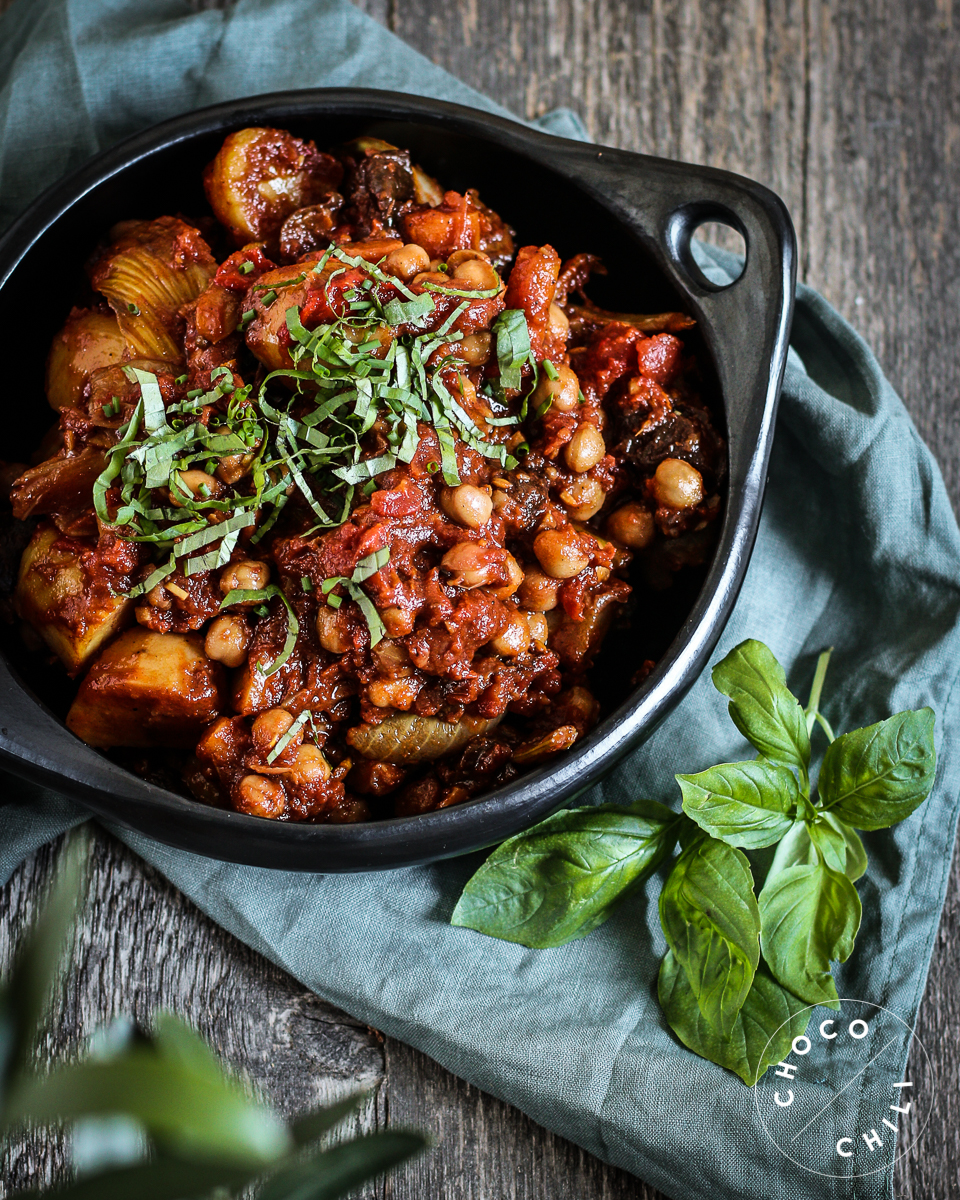 Vaikka tässä padassa onkin muutama erillinen työvaihe, kun kasvikset paahdetaan ensin uunissa ja sitten laitetaan pataan hautumaan, on tämä ruoka silti helppo tehdä. Pata sopii herkuteltavaksi esimerkiksi riisin tai kvinoan kanssa.