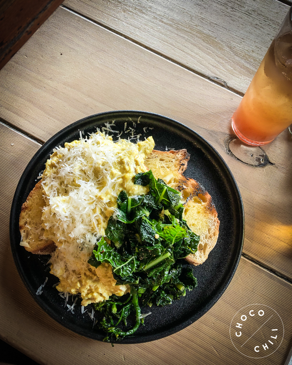 Paikallinen vegaaniruokainstituutio Smith & Daughters Fitzroyssa on se paikka, jota ei kannata jättää Melbourne-visiitillä väliin. Olin Suomessa selaillut ravintolan omaa keittokirjaakin ja ihastunut siihen, joten en voinut jättää testaamatta tätä paikkaa. Kävin Smith & Daughtersissa lauantaiaamuna brunssilla ja söin paahdettua hapanjuurileipää parmesaani-tofuscramblellä. Ihan todella hyvää! En keksinyt annoksesta mitään valittamista. Yleensä en ole valmiiden vegaanisten juustojen ystävä, mutta tässä vegaaninen parmesaani toimi erinomaisesti. Tofukokkelin koostumus oli täydellisen pehmeä, juuri sopivasti suolattu, eikä ravintohiivahiutaleiden maku hallinnut liikaa. Leipä oli sopivan sitkeää, kuten hyvän hapanjuurileivän kuuluu.