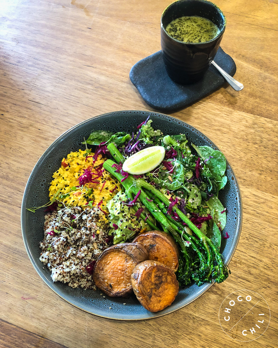 St Kildan alueella sijaitseva Urban Projuice on muuten vegaaninen, mutta joihinkin annoksiin saa halutessaan lisättyä kananmunaa. Lihaa tai maitotuotteita tässä kahvilassa ei käytetä lainkaan. UP oli mitä mainion paikka aamuna, jolloin teki mieli jotain astetta terveellisempää, mutta silti täyttävää ja maukasta. Omasta brunssikulhostani ei puuttunut makua: broccolinit oli paahdettu täydellisesti, tofuscramble oli mukavan kermaista ja täyttävää ja salaatin kastike oli ihanan raikas. Saatoin juoda täällä myös elämäni parhaan matchalatten!