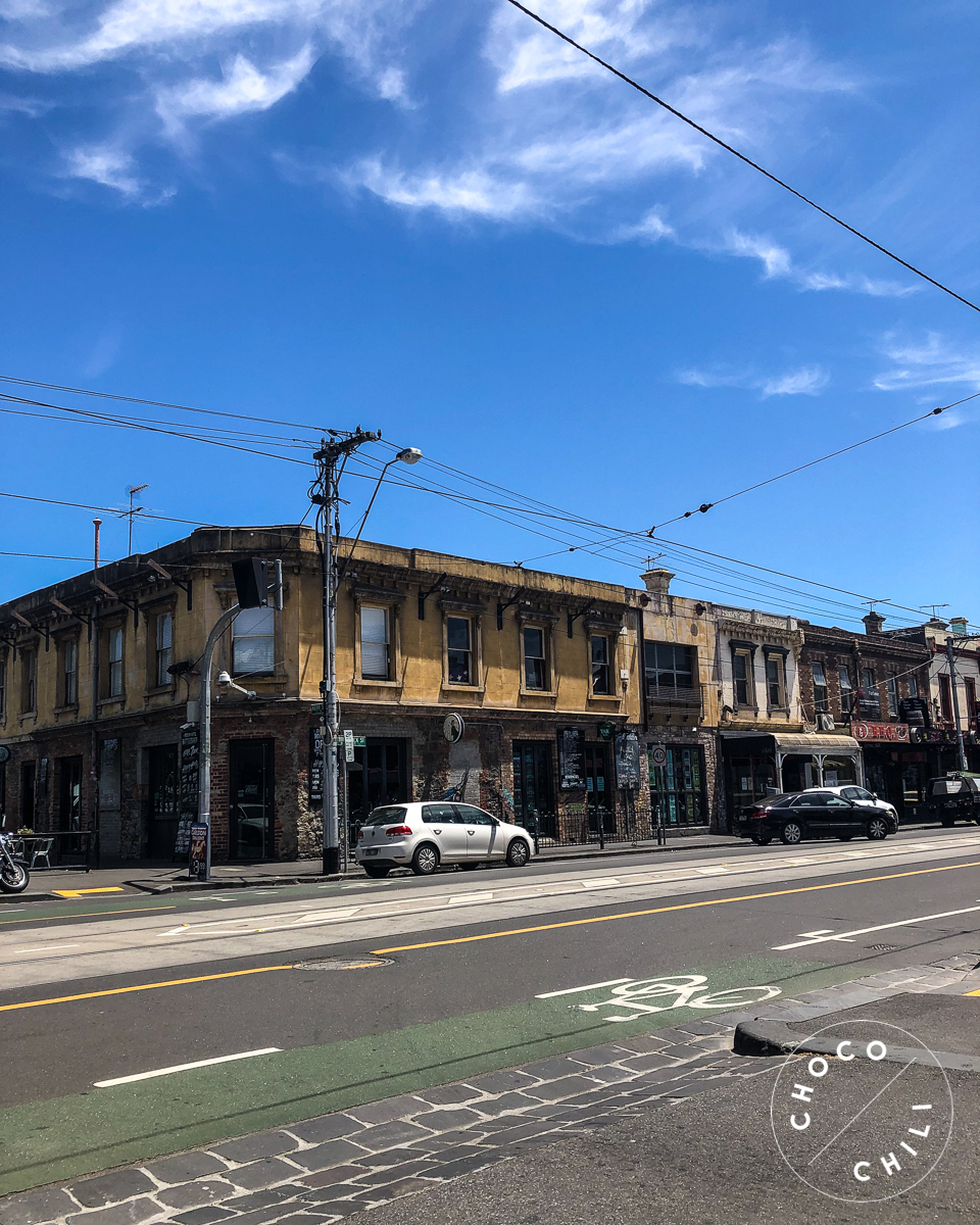 Melbournessa on pari kaupunginosaa, joissa vegaaneilla on erityisen hyvät oltavat. Fitzroy ympäristöineen on tarjonnaltaan aivan ehdoton. Siellä on vegaanisia ravintoloita ja kahviloita vieri vieressä, tai jos pulju ei sattumalta ole kokonaan vegaaninen, niin sieltä saa ainakin useita vegaanisia vaihtoehtoja. Pidin Fitzroyn yleisfiiliksestä muutenkin kovasti: hurmaavasti ränsistyneet 1800-luvun lopun rakennukset miellyttivät silmää! Fitzroyssa kannattaa laittaa korvan taakse myös ainakin Vegie Bar (vaikka paikan Big Mac -burgeria en erityisesti lähtisi suosittelemaan), Girls & Boysin jäätelöt ja Red Sparrown pizzat. Toinen hyvä kaupunginosa vegaaniruoalla herkutteluun on St Kilda, joka on lähellä kivaa rantaa ja kasvitieteellistä puutarhaa.