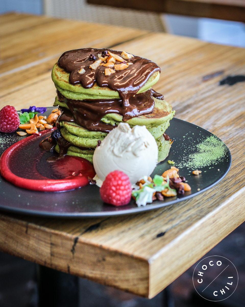 Toinen St Kildan alueella suosituksen ansaitsevista kahviloista on kokonaan vegaaninen Matcha Mylkbar. Söin testikerralla matchapannukakkuja, jotka olivat gluteenittomuudesta huolimatta herkullisia (mutta vehnäjauhoista tehtynä olisivat olleet varmasti vielä parempia). Annoksessa oli lisänä superherkullista suolakaramellijäätelöä, suklaakastiketta, vadelmia ja suolapähkinöitä. Kaakaonibsit olisin kyllä jättänyt tästä pois, vaikka annos olikin kokonaisuutena varsin mainio!