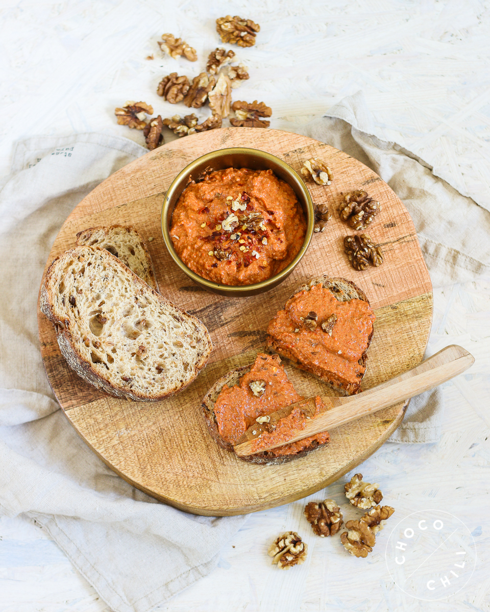 Lähi-idän keittiöstä löytyy hummuksen lisäksi muitakin mahtavia tahnoja, kuten tämä paahdetuista paprikoista ja saksanpähkinöistä valmistettu taivaallisen hyvä muhammara. Jos minun pitäisi syödä yhtä asiaa koko loppuelämäni, se olisi varmastikin muhammara vaalean hapanjuurileivän kanssa.