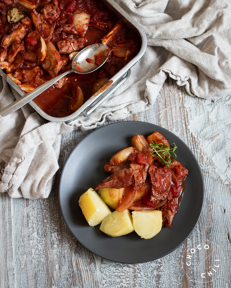 Ulkona alkaa olla jo kevättä ilmassa, mutta jotenkin edelleen tekee mieli syödä talvisia pataruokia ja tuhteja pastoja. Eilen tein kreikkalaisesta lihapadasta vegaanisen version, mistä tuli aivan mainio talviruoka. Tämä sopisi muuten ihan loistavasti myös pääsiäispöytään! Ja mikä parasta: vegaaniversio stifadosta kypsyy lihaversiota huomattavasti nopeammin.