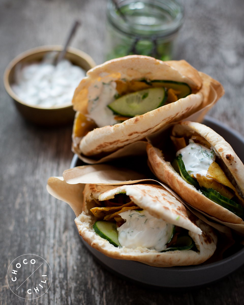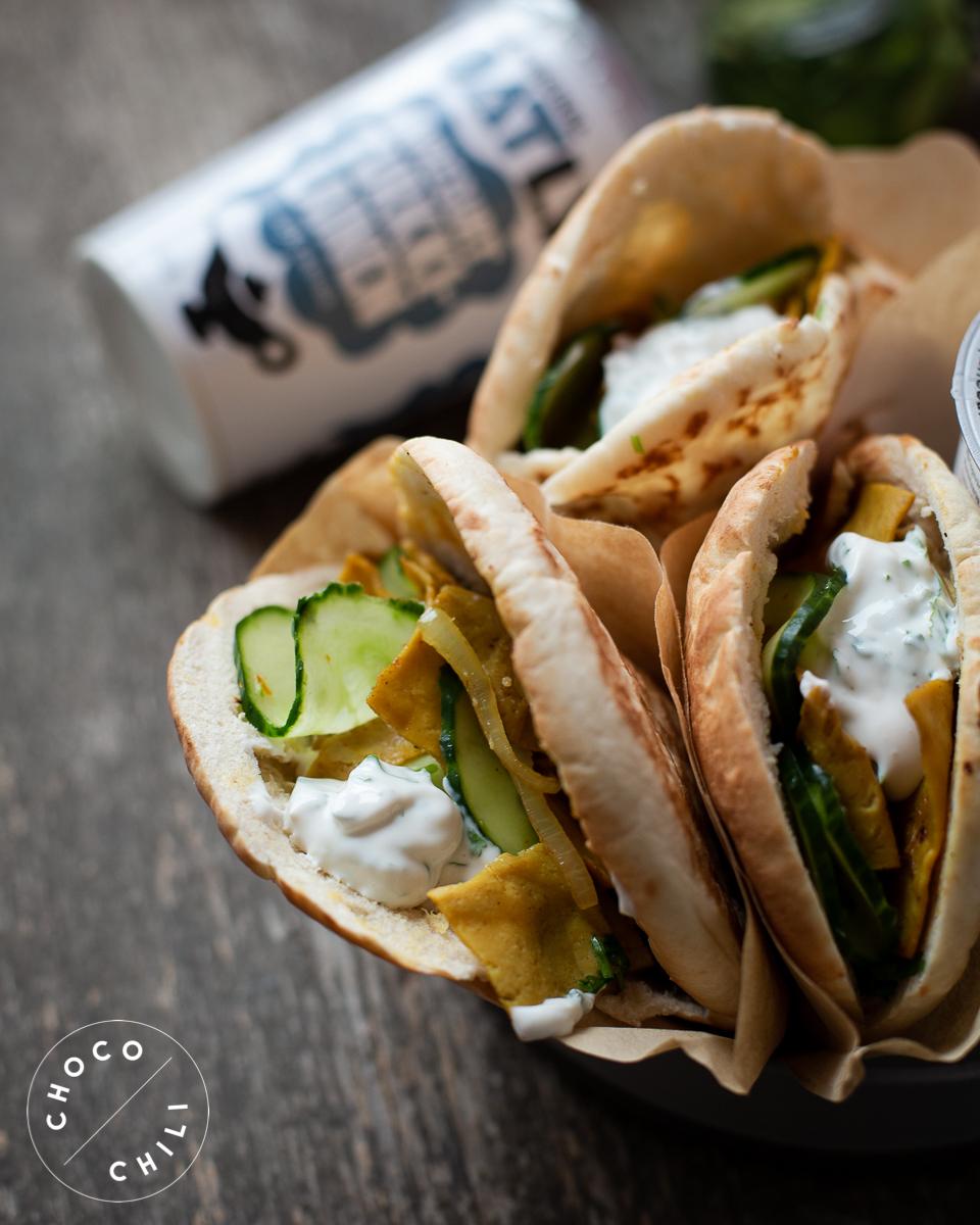 Nämä ihanat pitalevät täytetään seitankebabilla, pikapikkelöidyillä korianterikurkuilla ja jogurttikastikkeella. Halutessasi voit lisätä joukkoon muitakin kasviksi, kuten salaattia tai paprikaa.