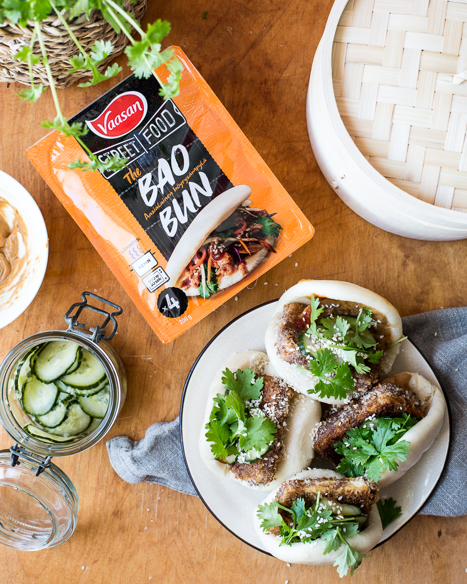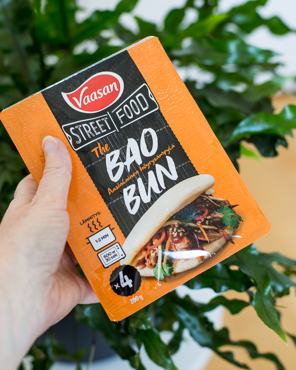 Nyt kun Vaasan on tuonut markkinoille valmiit The Bao Bun -sämpylät, voi baoilla herkutella kotonakin, eikä tehtäväksi jää enää kuin täytteiden valmistus. Sämpylät lämmitetään mikrossa, kattilassa siivilässä tai perinteisessä bambuisessa höyrytyskorissa. Ja voin sanoa, ettei maksa vaivaa alkaa tekemään sämpylöitä alusta asti itse. Kotona höyrytetyt valmiit sämpylät menevät tuoreista ihan täysin!