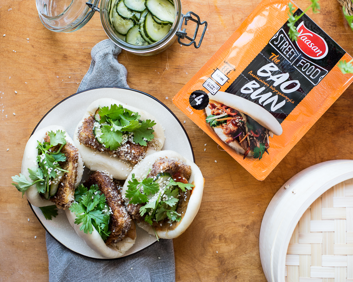 Höyrytetyt bao-sämpylät ovat alun perin Kiinasta, mutta niitä on etenkin viime vuosina alkanut näkyä entistä enemmän täällä Suomessakin, mitä erilaisimmilla täytteillä. Olen reissuillani syönyt baoja usein ja rakastan niiden ihanaa, pehmeää ja ilmavaa koostumusta. Erityisen hyviä baot ovat mielestäni silloin, kun pehmeiden sämpyölöiden vastapainona on rapeat täytteet.