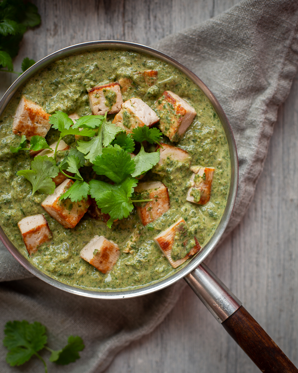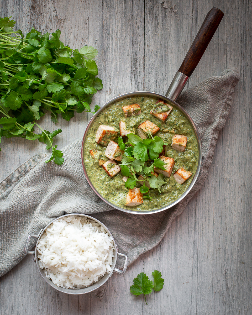 Tämä superhelppo ja herkullinen intialainen pinaattikastike valmistetaan perinteisesti kotijuustosta, mutta vähintään yhtä hyvää tulee tästä vegaaniversiosta.
