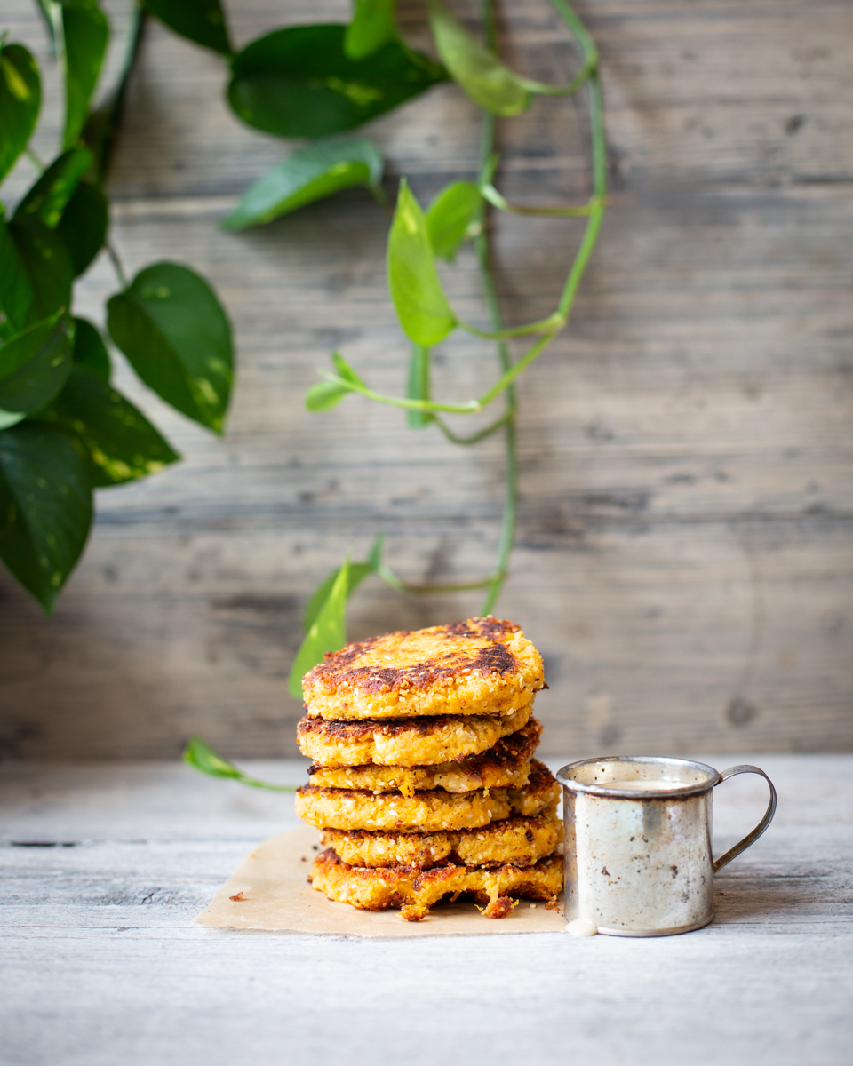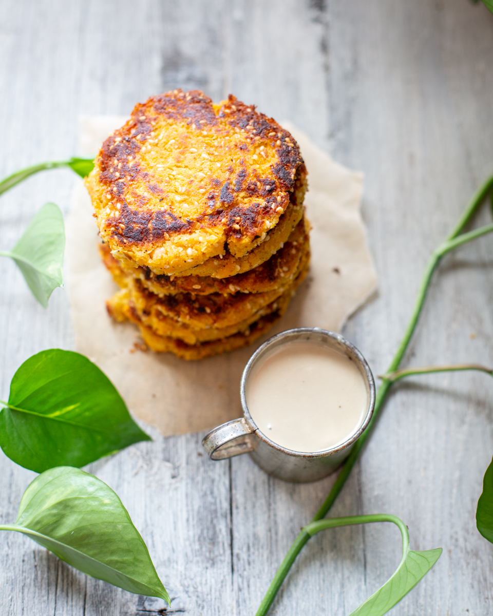 Porkkanapihvit on klassikko, jota ainakin meillä syötiin usein kotona. Näihin pihveihin laitetaan kuitenkin vähän eri ainesosia ja mausteita kuin lapsuudessa. Tahinia, seesaminsiemeniä, juustokuminaa ja korianteria. Reseptiä on kuitenkin helppo muunnella, laitan vinkit tämän postauksen loppuun.