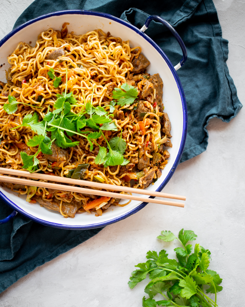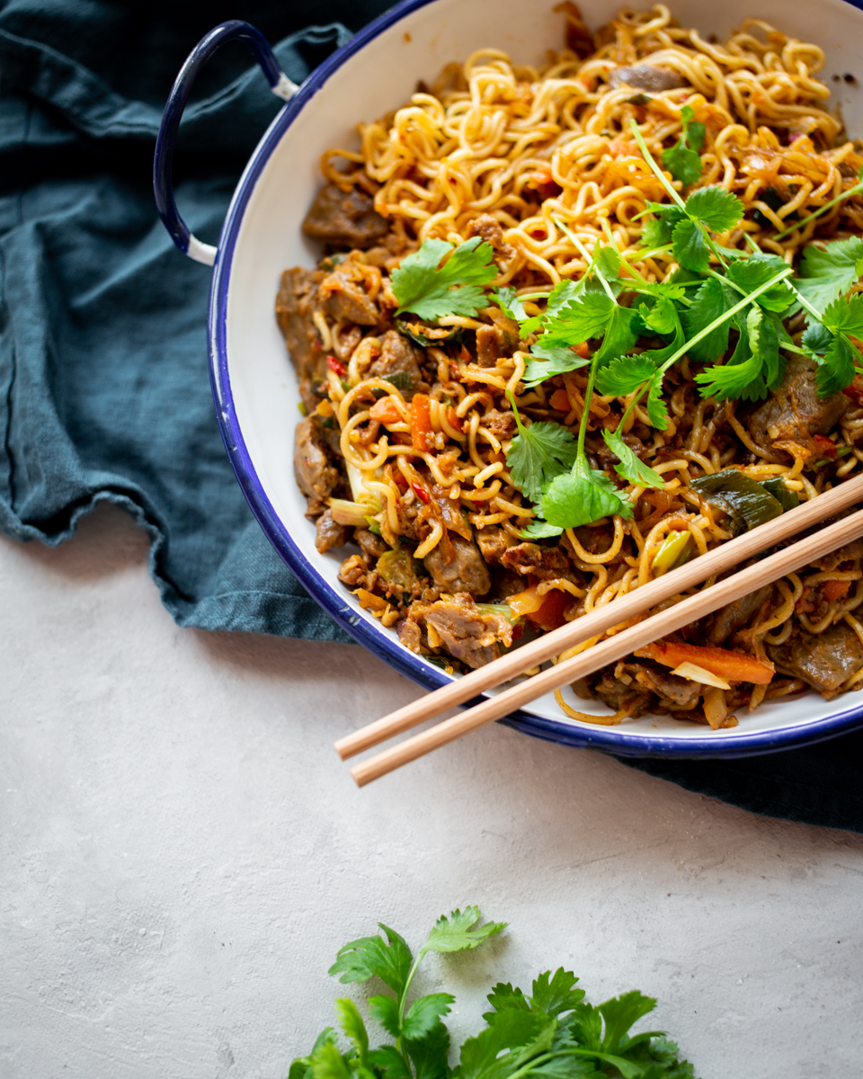 Nopeat nuudeliruoat ovat arkisin lemppareitani. Tässä ohjeessa yhdistyy monta suosikkijuttuani: kimchi, nuudelit, härkäpapusuikaleet ja lämmittävä chili. Tämän ruoan tekemiseen ei kulu kuin hetki ja se on ihan sairaan hyvää!