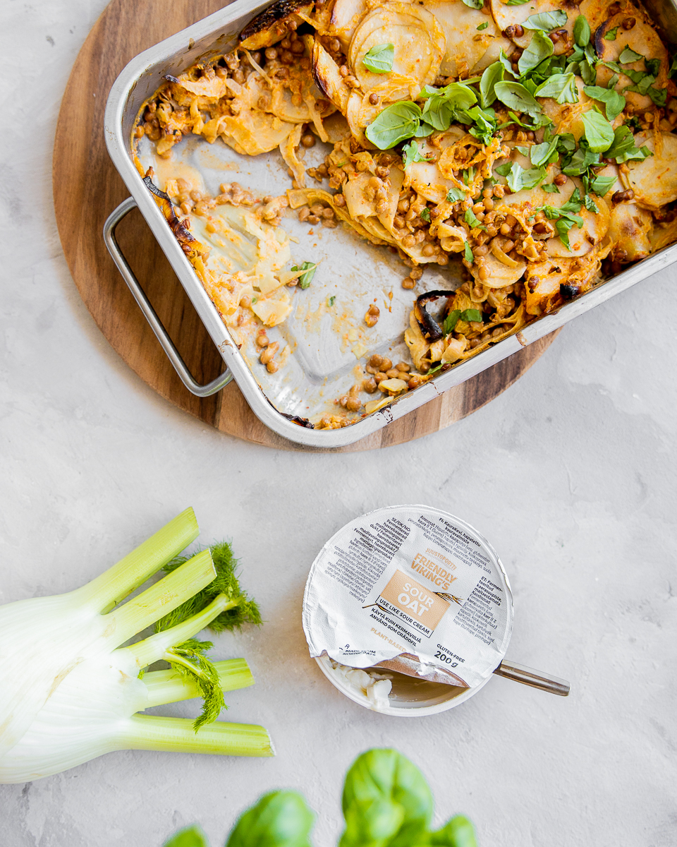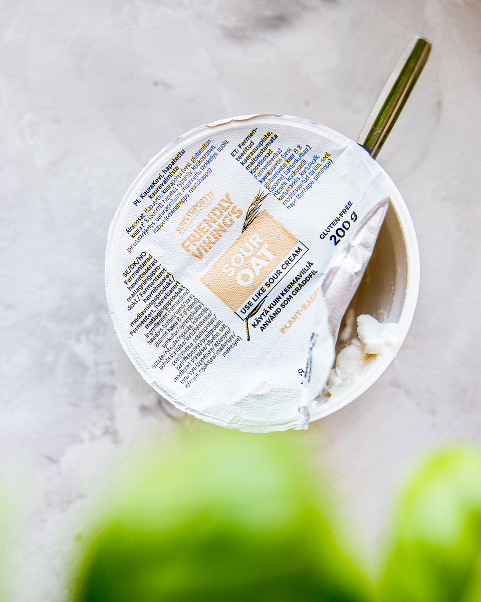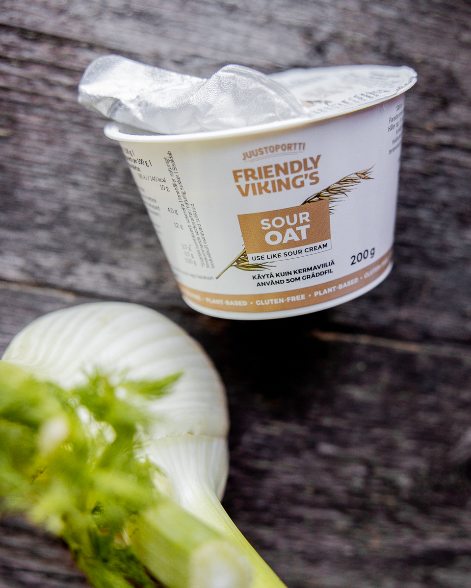 Minulla ei ole tapana säästellä (kaura)kerman kanssa kun teen ruokaa, mutta välillä sille kaipaa vaihtelua! Astetta happamampi ja raikkaampi kermaviiliä muistuttava Friendly Viking’sin kotimaisesta kaurasta valmistettu Sour Oat sopii ihan loistavasti ruoanlaittoon, kuten erilaisiin laatikkoruokiin, pastan sekaan tai sosekeittojen pinnalle. Sour Oat on tietysti myös mitä mainioin dippikastikepohja sipseille tai kasviksille! Sekoita Sour Oatin joukkoon tilkka sitruunamehua ja haluamasi dippikastikejauhepussi (vegaaniset voit tarkistaa Vegaanituotteet.netistä) tai mausta oman maun mukaan. Sour Oat on muuten myös gluteeniton!