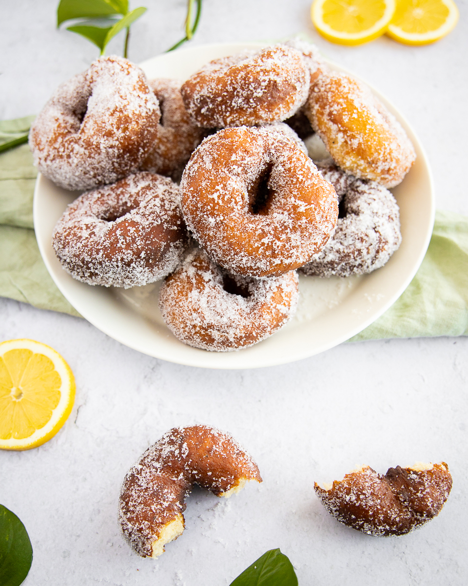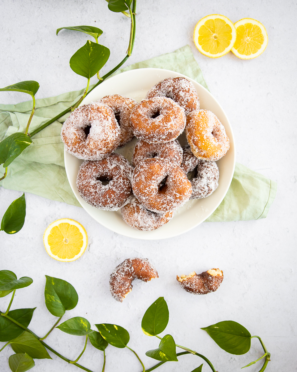 Sitruunalla ja soijapohjaisella rahkalla maustetut munkit ovat erityisen herkullisia! Voit pyöritellä tästä taikinasta munkkirinkilöiden sijaan myös pyöreitä minimunkkeja.