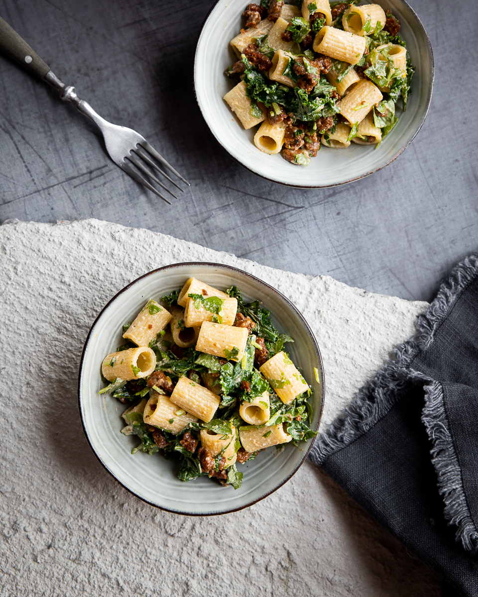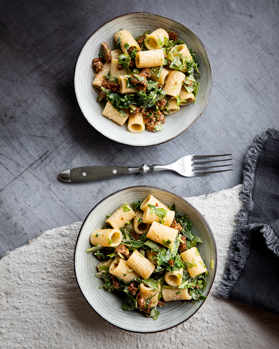 Tämä salaatti on lähes täydellinen lounas ja sopii mainiosti otettavaksi myös mukaan evääksi. Tahinifanina olen tietysti myös ehdottomasti sitä mieltä, että tämä tahinikastike sopii pastasalaattiin paremmin kuin majoneesi.