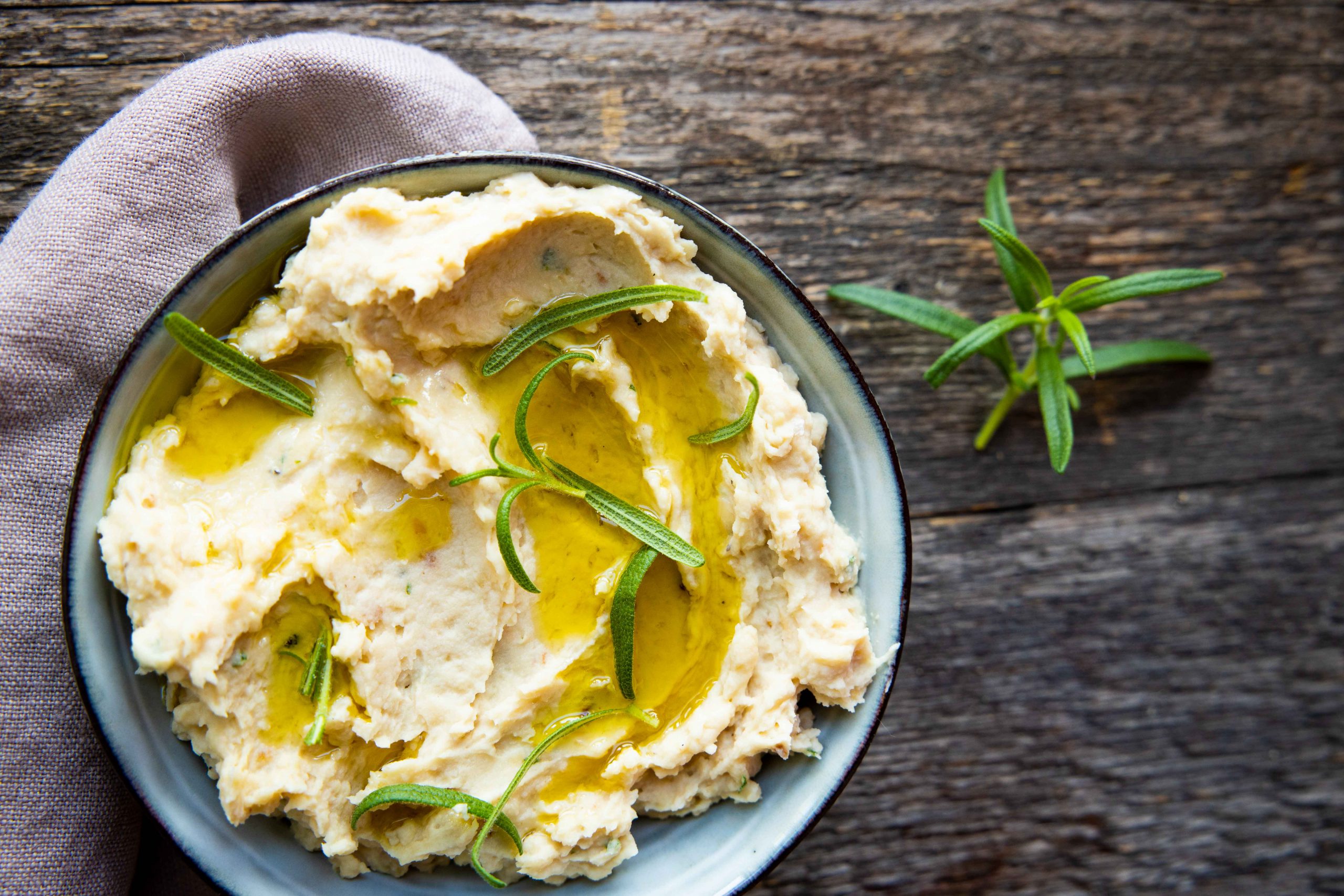 Herkullinen tahna uunissa paahdetusta valkosipulista, pavuista ja rosmariinista.