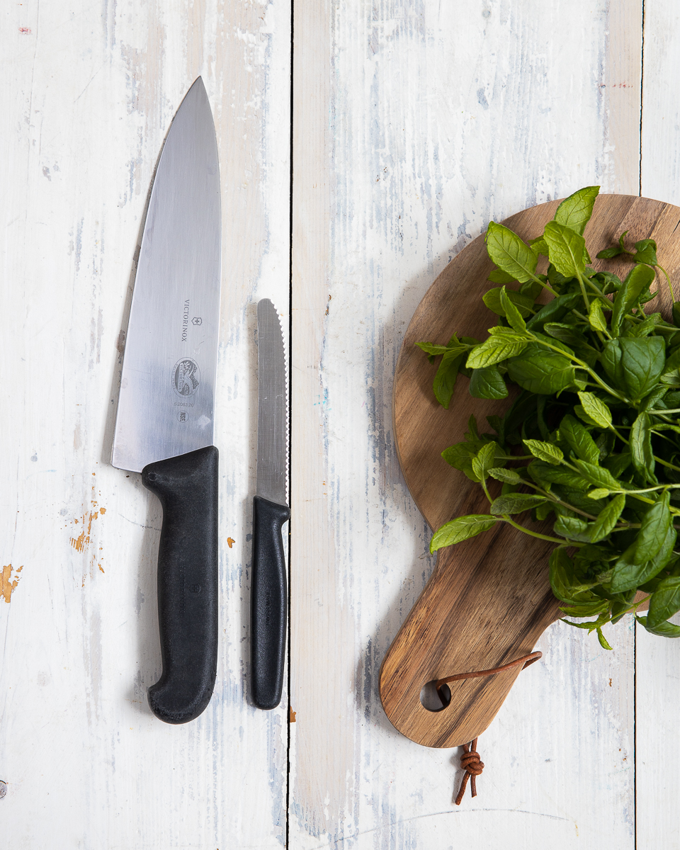 Victorinoxin veitset ovat laadukkaita ja kestävät käytössä vuosikausia, mutta silti niihin ei tarvitse upottaa älyttömästi rahaa. Hyvällä kokkiveitsellä on mielestäni muutama tärkeä ominaisuus: terän on oltava riittävän iso ja kestää hyvin uudelleen teroittamista. Huonolaatuisesta teräksestä valmistetut veitset eivät kestä terävänä kovin pitkään, mutta Victorinoxin laadukkaat materiaalit pysyvät terävinä ja ne saa helposti teroitettua. Lisäksi veitsen on oltava mukava ja tukeva kädessä. Käytän isoa kokkiveistä oikeastaan kaikkeen pilkkomiseen, mutta pieni Victorinoxin tomaattiveitsi on sille näppärä apuväline. Vaikka tuo terävä pikkuveitsi on nimensä mukaisesti kehitetty erityisesti tomaatin leikkaamiseen, käytän sitä itse keittiössäni esimerkiksi valkosipulien, inkiväärin ja kiivien kuorimiseen sekä muuhun tarkkuutta vaativaan leikkelyyn.