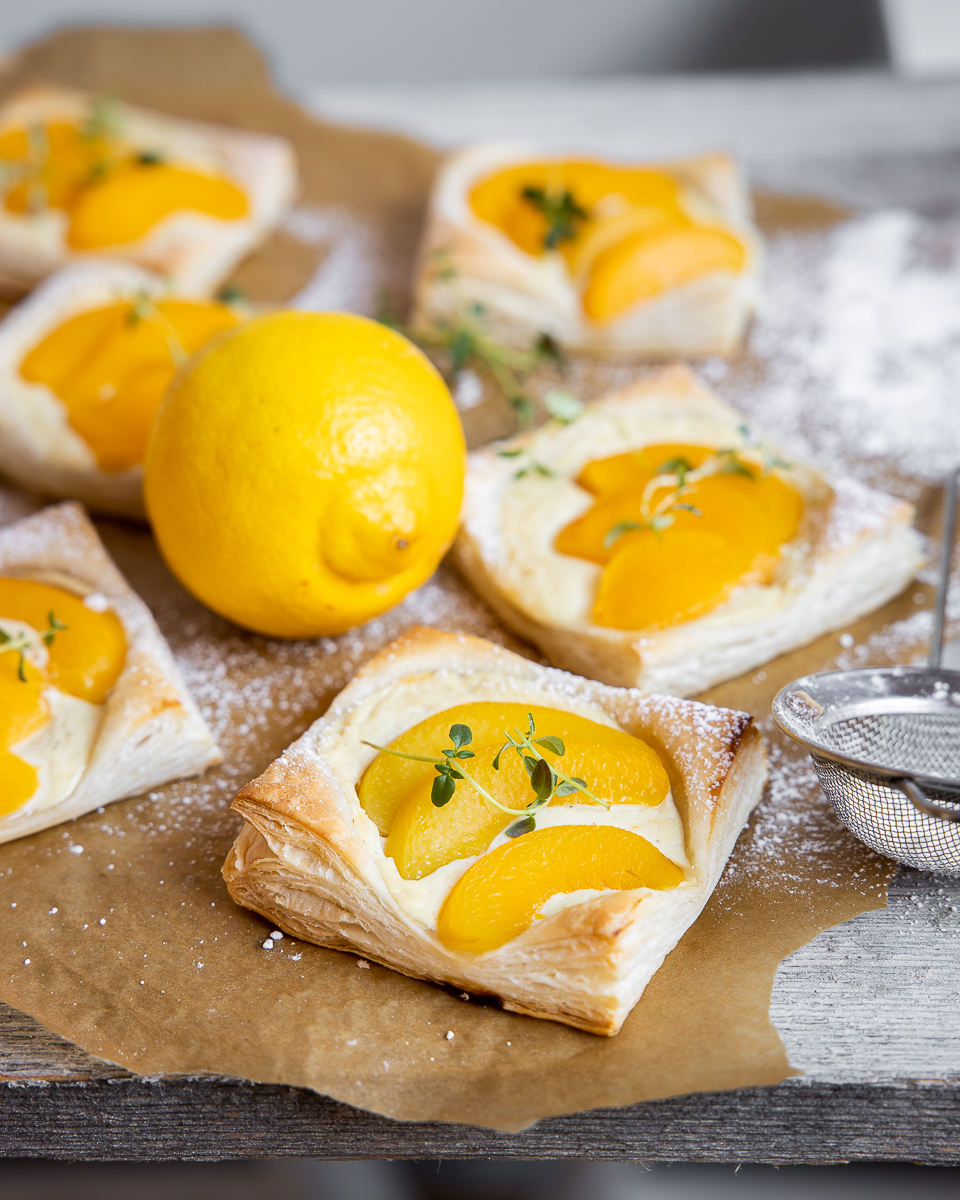 Lehtitaikinapohjalle tehtävät leivonnaiset ovat suosikkejani: niiden tekeminen on helppoa ja ne maistuvat aina kaikille. Näissä pääsiäiseen sopivissa persikkapiirakoissa on sitruunalla maustettu vegaaninen rahkatäyte. Näitä valmistuu kokonainen pellillinen pienellä vaivalla!