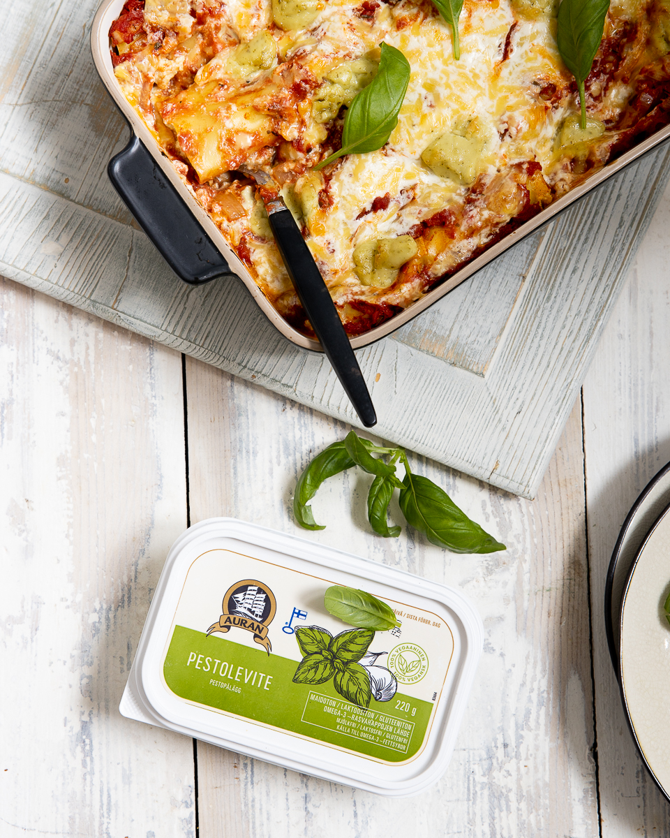 Näiden cannellonien mehevyyden salaisuus on herkullisessa tofutäytteessä, jossa on käytetty Auran uutta täyteläistä pestolevitettä. Kaikki Auran vegaaniset levitteet sopivat paitsi leivän päälle, myös monipuolisesti ruoanlaittoon. Käytän itse Auran levitteitä mm. uuniperunoiden täytteissä ja pastakastikkeina. Chililevite on superhyvää myös burgereiden välissä! Levitteissä on runsaasti makua, joten ruokien maustamisen kanssa pääsee muuten helpolla. Nämä Suomessa valmistetut vegaaniset levitteet löytyvät tavallisista ruokakaupoista.