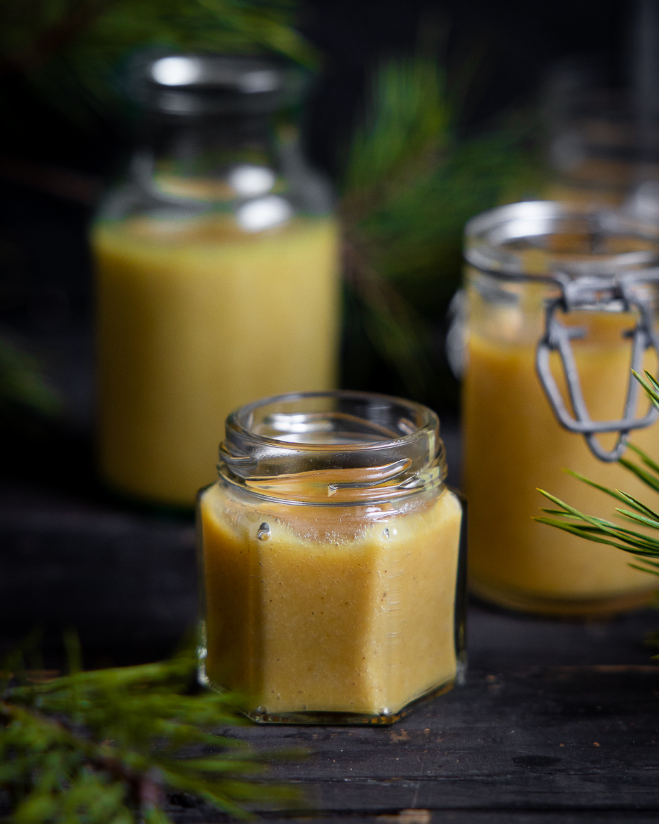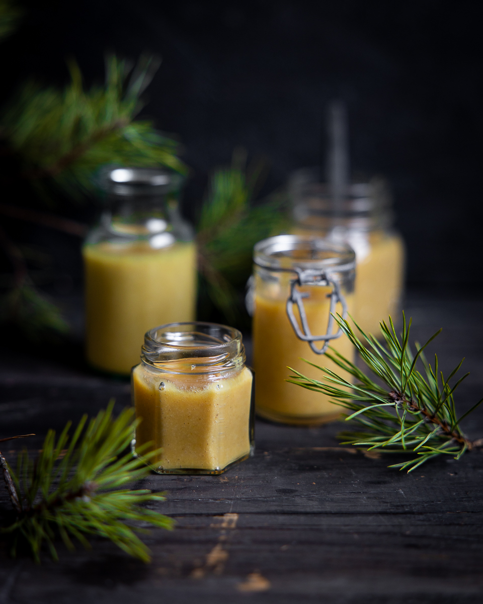 Useimpiin kotitekoisiin sinappiohjeisiin käytetään lehmänmaitotuotteita ja kananmunaa, mutta jouluinen sinappi valmistuu helposti myös ilman eläinperäisiä aineita mausta tinkimättä. Makean kotisinapin valmistamiseen kuluu vain muutama minuutti ja tämä sopii täydellisesti esimerkiksi seitankinkun kanssa.