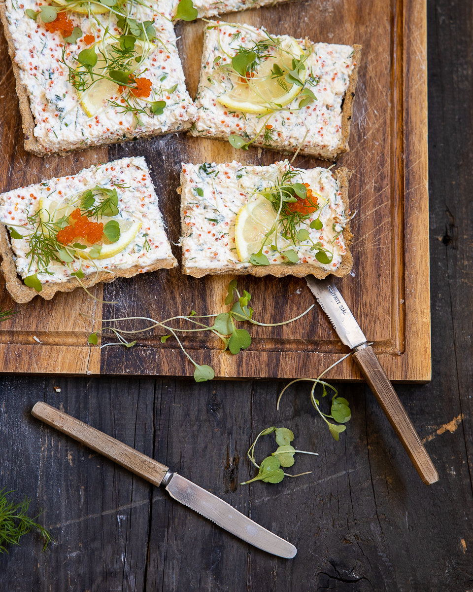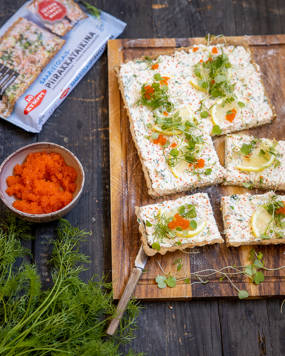 • Jos lähikaupastasi ei löydy merileväkaviaaria, voit korvata sen pikkupurkillisella pieniä kapriksia. Hienonna niitä hieman ennen sekoittamista täytteen joukkoon.