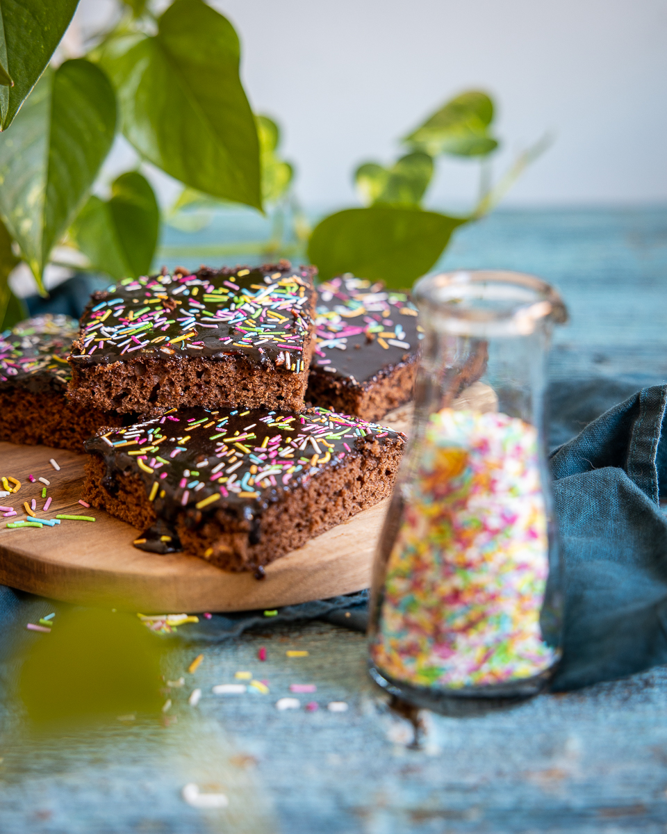 - Kun mokkapalojen pohja on hieman jäähtynyt, valmista kuorrute. Kiehauta margariini ja kahvi kattilassa. Anna jäähtyä pari minuuttia ja sihtaa sitten joukkoon kaakaojauhe ja lisää tomusokeri. Sekoita tasaiseksi vispilällä ja levitä pohjan päälle. Kuorrute valuu, joten levitä se niin, että leivonnainen on vielä uunipellillä. Ripottele pinnalle strösseleitä, anna kuorrutteen jähmettyä ja leikkaa sitten leivonnainen paloiksi.