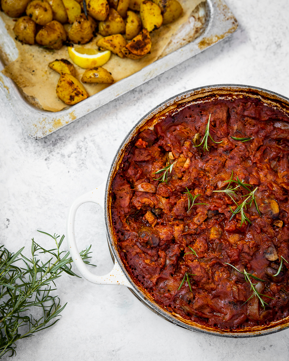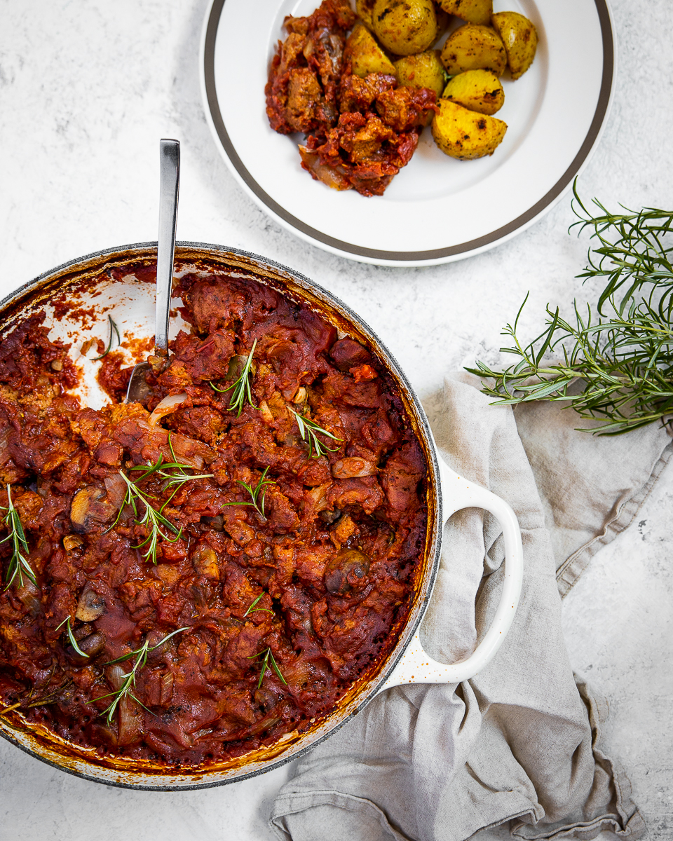 Punaviinillä ja rosmariinilla maustettu seitan sopii täydellisesti pääsiäispöytään!