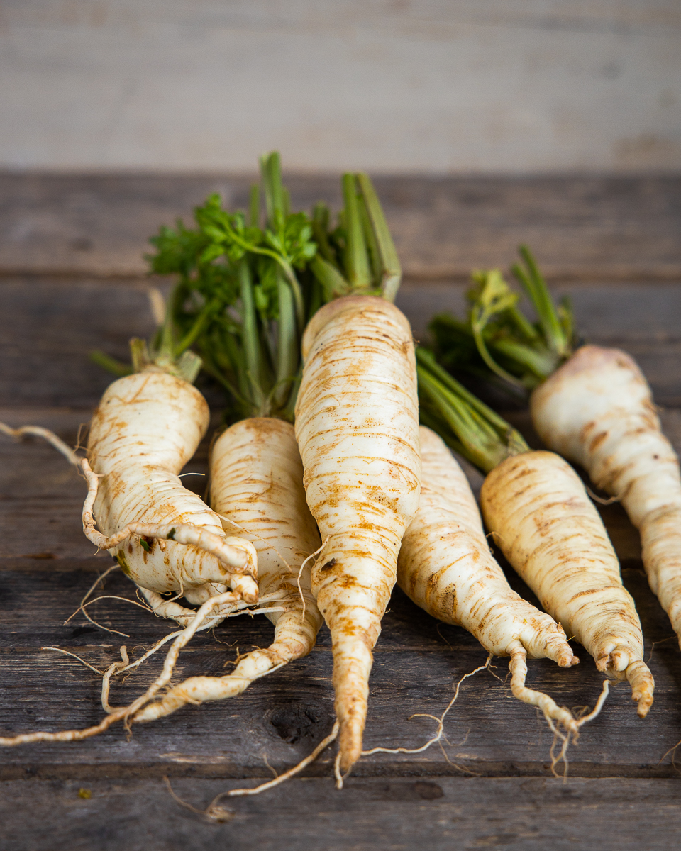Tunnetko jo juuripersiljan? Tämä persiljan sukuinen juures muistuttaa ulkonäöltään palsternakkaa, mutta maussa ja etenkin raa’an juureksen tuoksussa on herkullista persiljaisuutta. Juuripersiljaa voi käyttää ruoissa muiden juuresten tapaan. Itse tykkään siitä eniten uunissa paahdettuna (resepti täällä), mutta siitä syntyy myös ihanaa samettista keittoa.