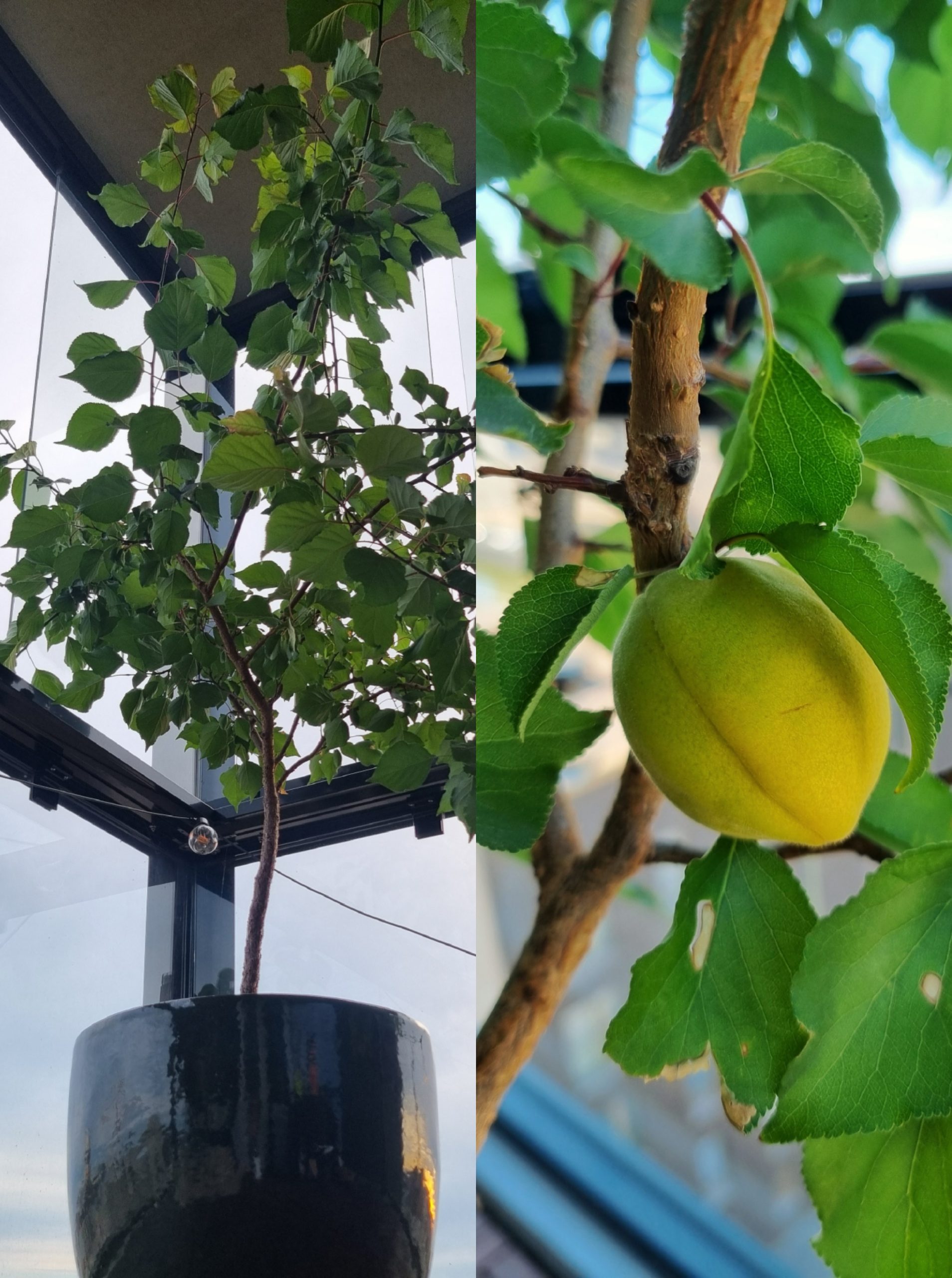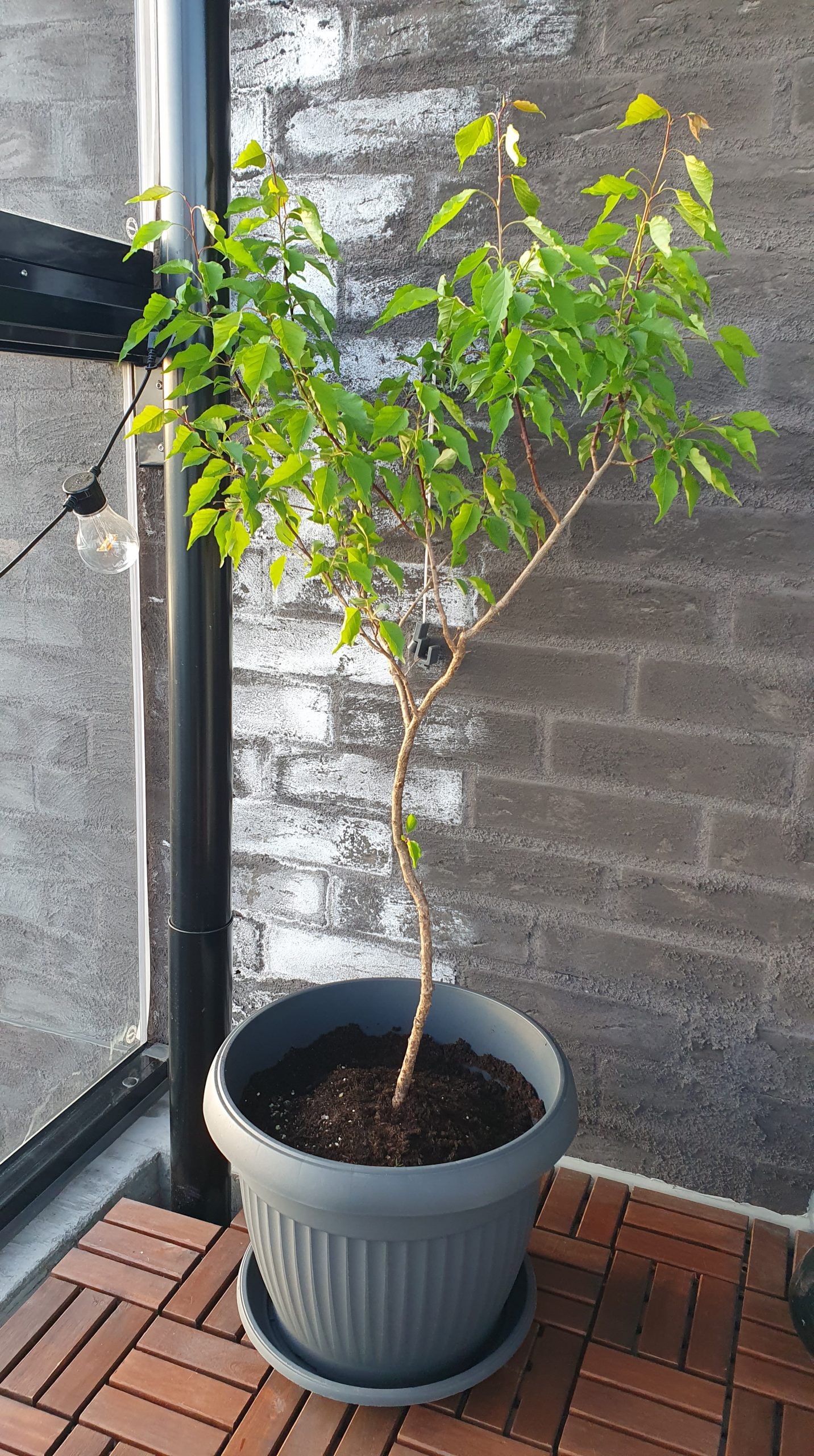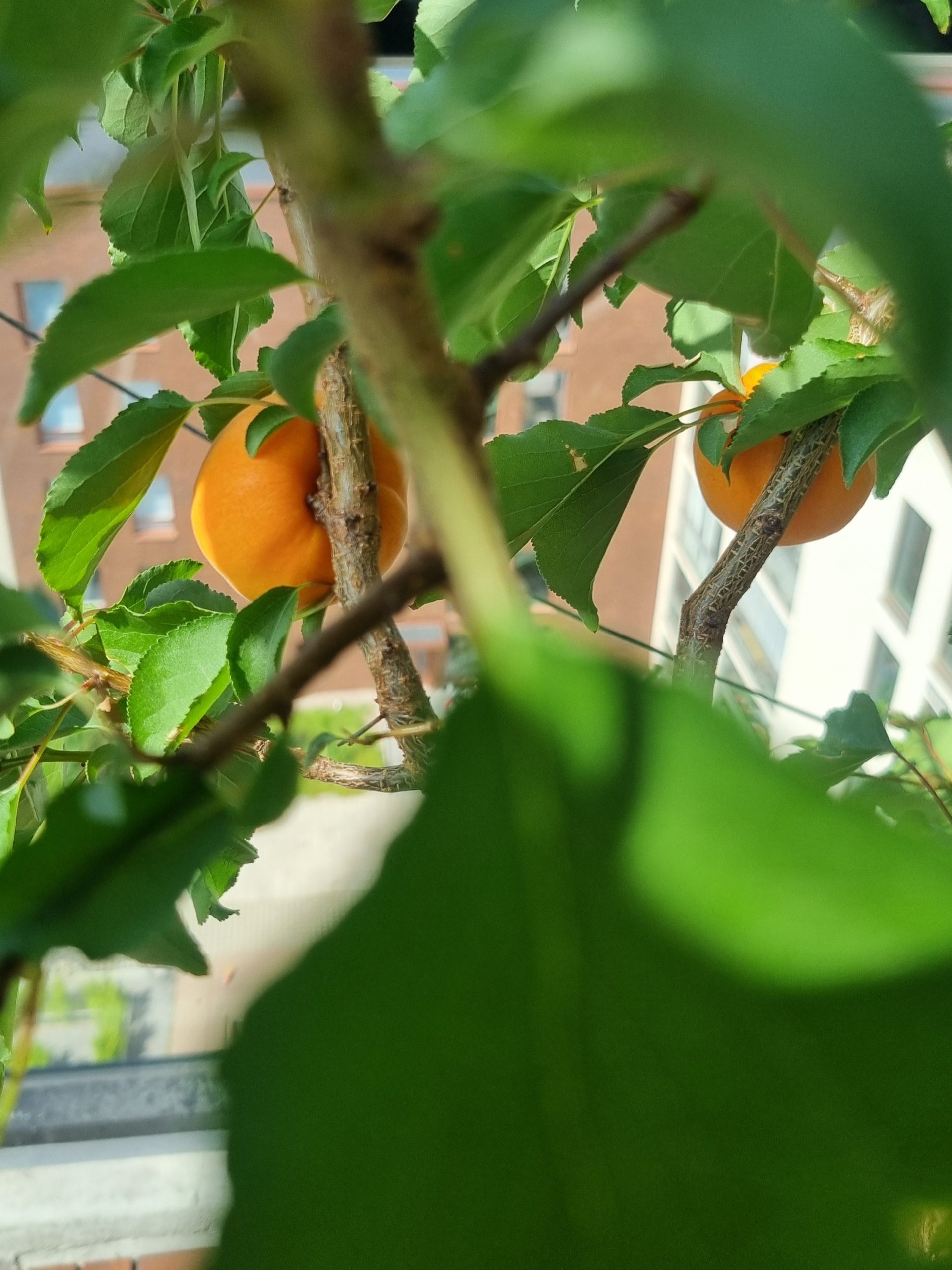 Saimme keväällä 2023 lahjaksi pienen aprikoosipuun. Tovin pohdittuamme päätimme kokeilla kasvattaa sitä mökkipihan sijaan parvekkeella. Meidän mökin kasvuvyöhyke ei olisi todennäköisesti ollut puulle sopiva, joten varmempaa oli yrittää sen kasvatusta Helsingissä lasitetulla parvekkeella. Ja näyttää siltä, että aprikoosi viihtyy parvekkeella erinomaisesti!