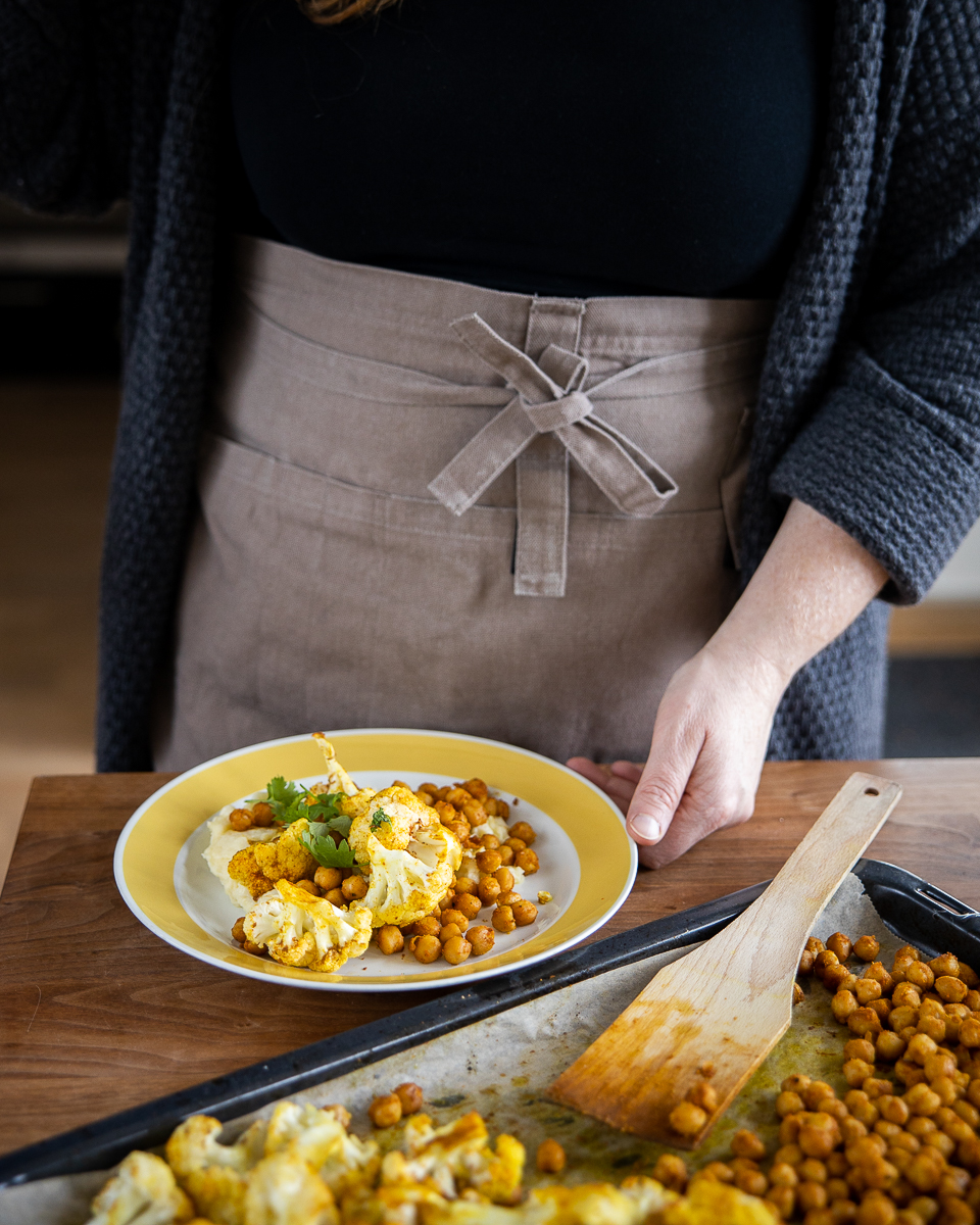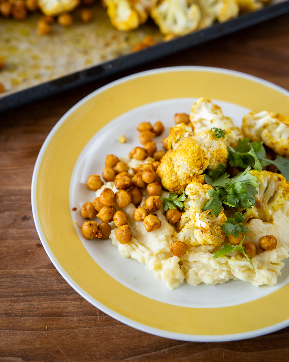 - Paahdetut kikherneet ja kukkakaali sopivat muihinkin ruokiin kuin perunamuusin kanssa: syö ne esimerkiksi kulhoruoan osana hummuksen kanssa tai tarjoa esimerkiksi paahdettua bataattia lisänä.